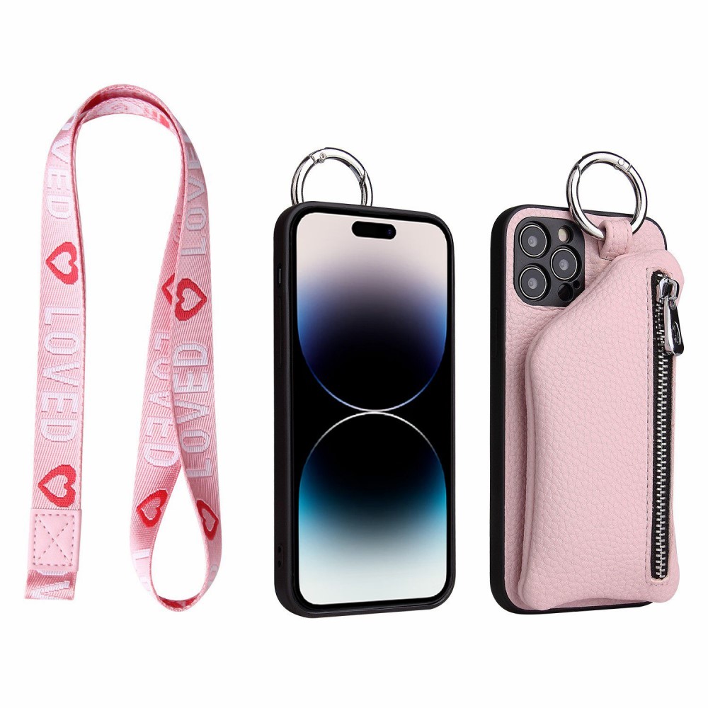 Θήκη iPhone 14 Pro Mad Mask πλάτη δερματίνης με κορδόνι και πορτοφόλι με φερμουαρ από αντικραδασμικό TPU κόκκινο