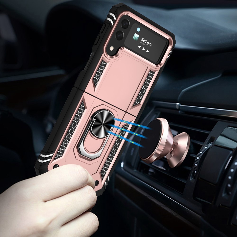Θήκη Samsung Galaxy Z Flip4 5G Mad Mask πλάτη Armor V2 με Μαγνητικό δαχτυλίδι και Βάση στήριξης TPU ροζ χρυσό