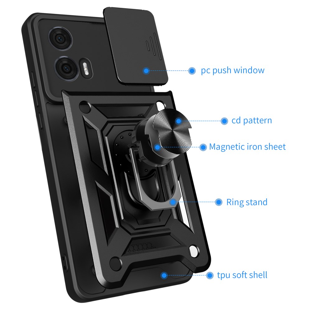 Σκληρή Πλάτη PC+TPU για Motorola Edge 50 Fusion 5G από OEM σε Μαύρο χρώμα με περιστρεφόμενο Stand και προστασία κάμερας.