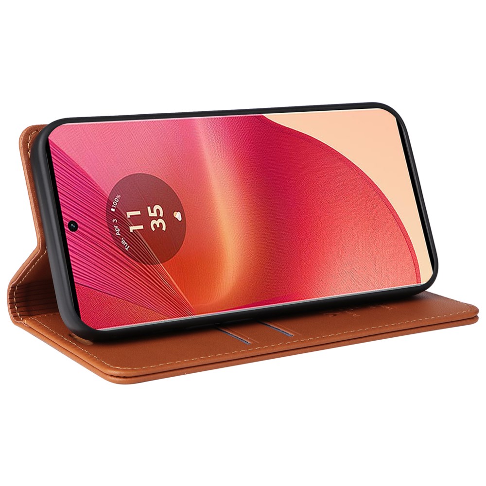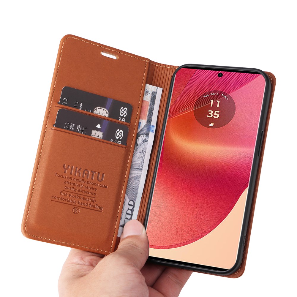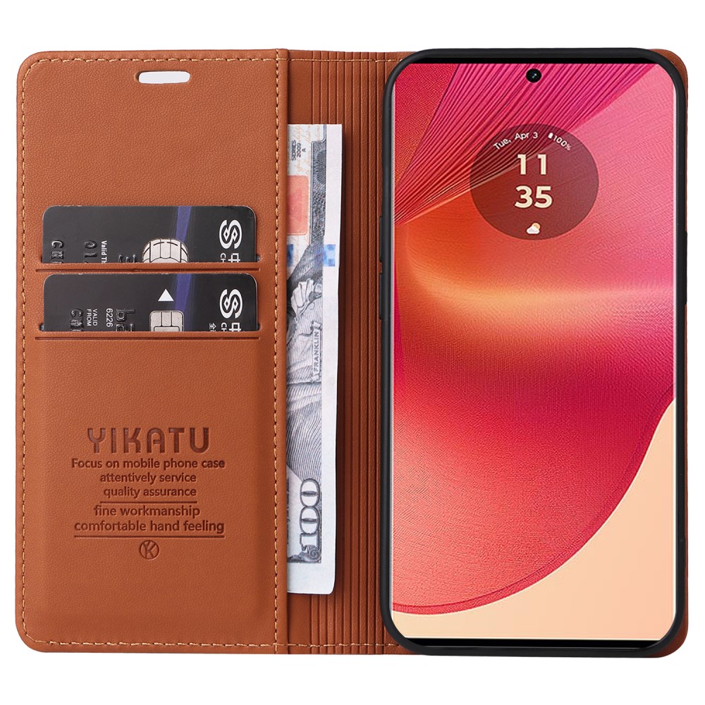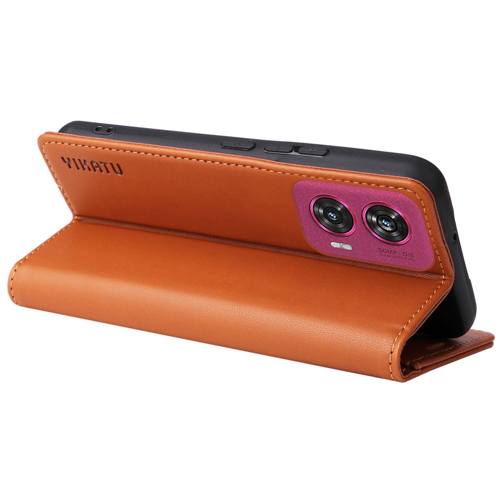 Flip Πορτοφόλι από Συνθετικό Δέρμα (PU) με TPU για Motorola Edge 50 Fusion 5G από YIKATU YK-001 σε Καφέ με θήκες καρτών και Stand.