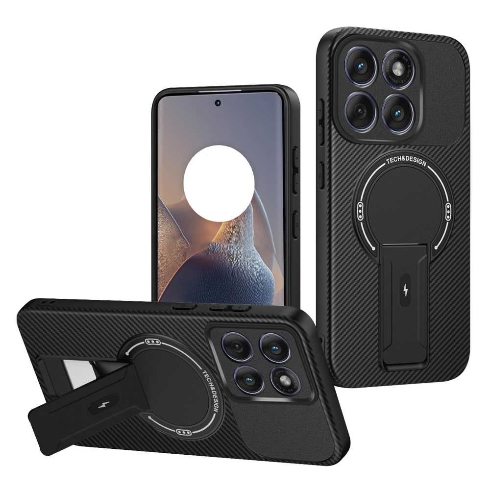 Σκληρή Πλάτη PC+TPU για Motorola Edge 60 5G / Fusion 5G σε Μαύρο χρώμα με υφή Carbon Fiber, ενσωματωμένο Stand και συμβατότητα με μαγνητική βάση αυτοκινήτου.