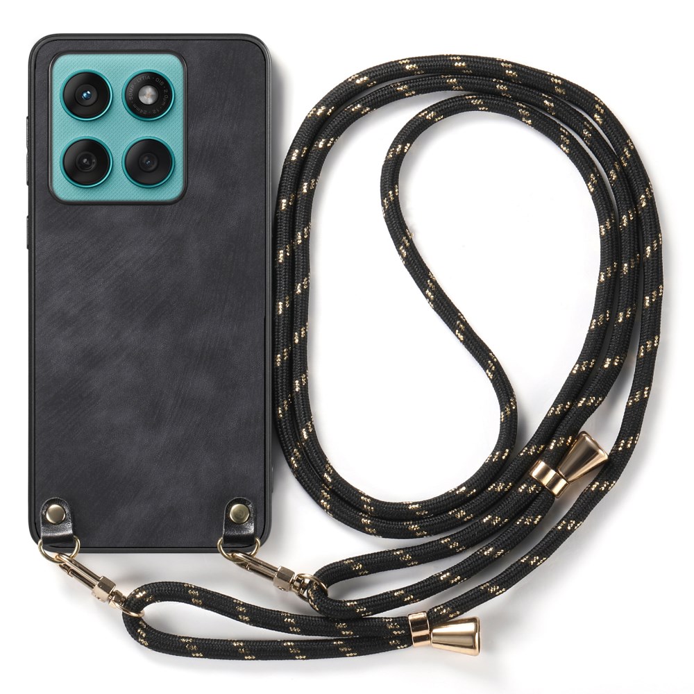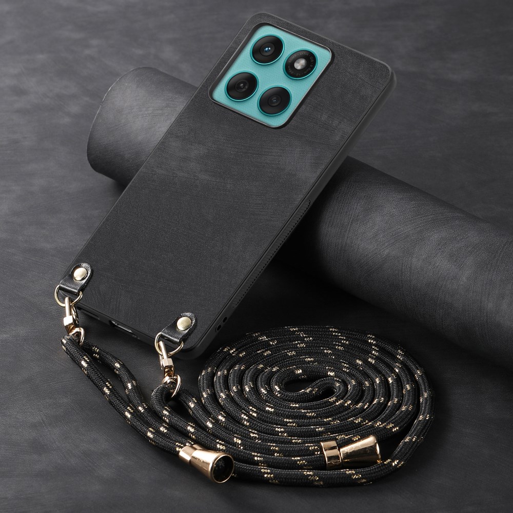Πλάτη από Συνθετικό Δέρμα (PU) με TPU για το Motorola Edge 60 Fusion 5G από OEM σε Μαύρο χρώμα με ρυθμιζόμενο λουράκι 120cm για hands-free μεταφορά.