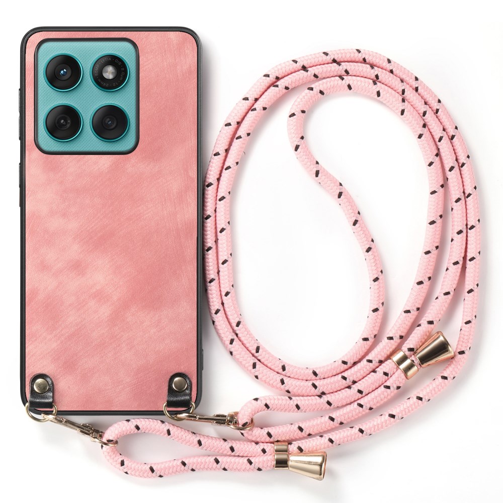 Πλάτη από Συνθετικό Δέρμα (PU) με TPU για Motorola Edge 60 Fusion 5G από OEM σε Ροζ χρώμα με ρυθμιζόμενο λουράκι 120cm.