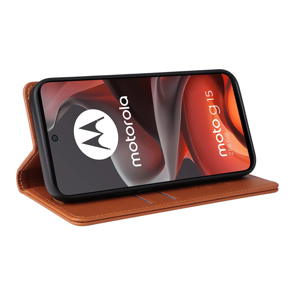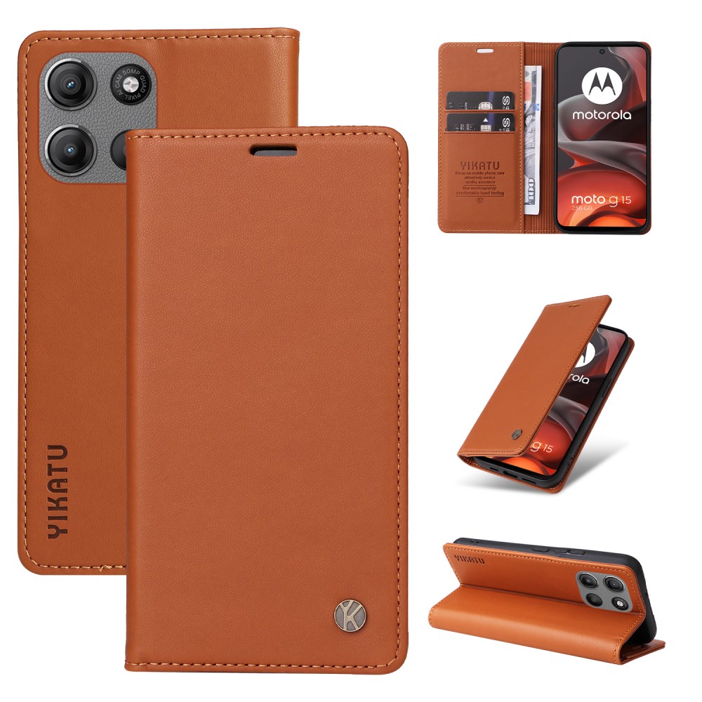 Θήκη Motorola Moto G15 4G – YIKATU – Flip Πορτοφόλι από Συνθετικό Δέρμα (PU) με TPU – Καφέ – Wallet/Stand