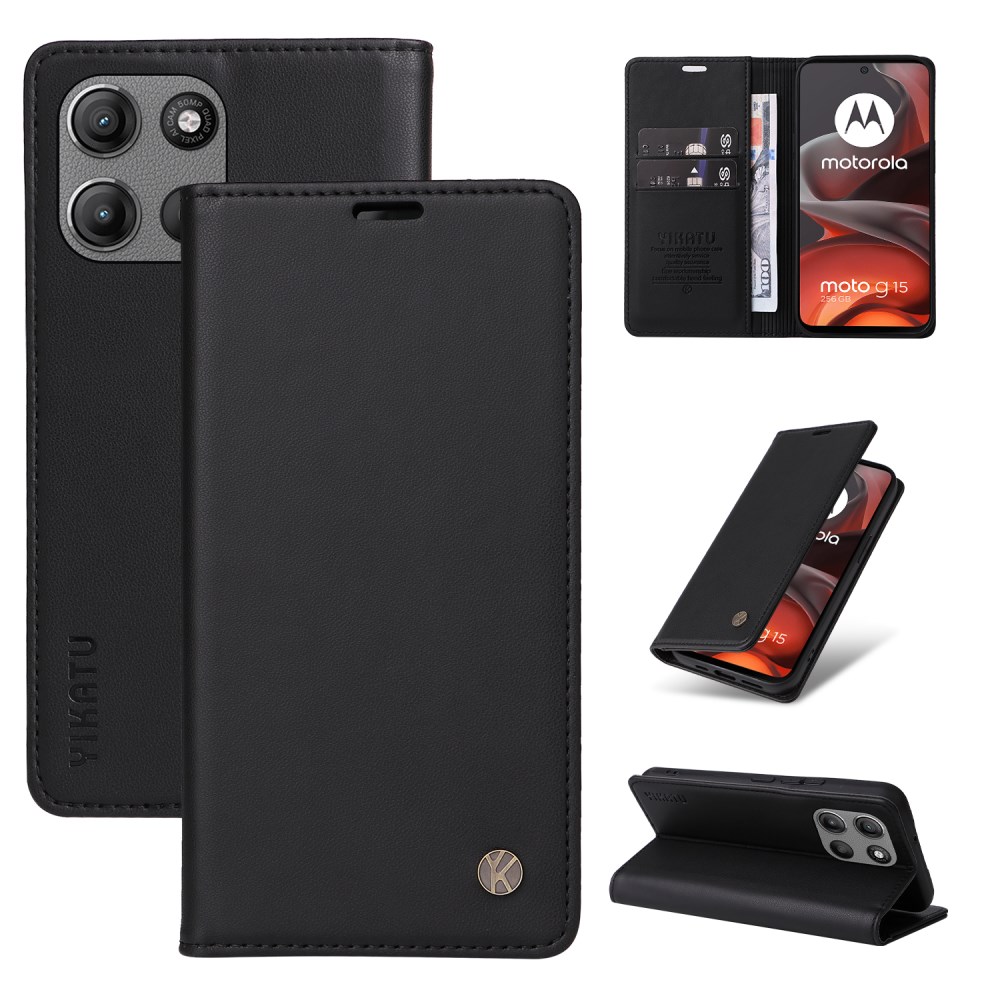 Θήκη Motorola Moto G15 4G – YIKATU – Flip Πορτοφόλι από Συνθετικό Δέρμα (PU) με TPU – Μαύρο – Wallet/Stand