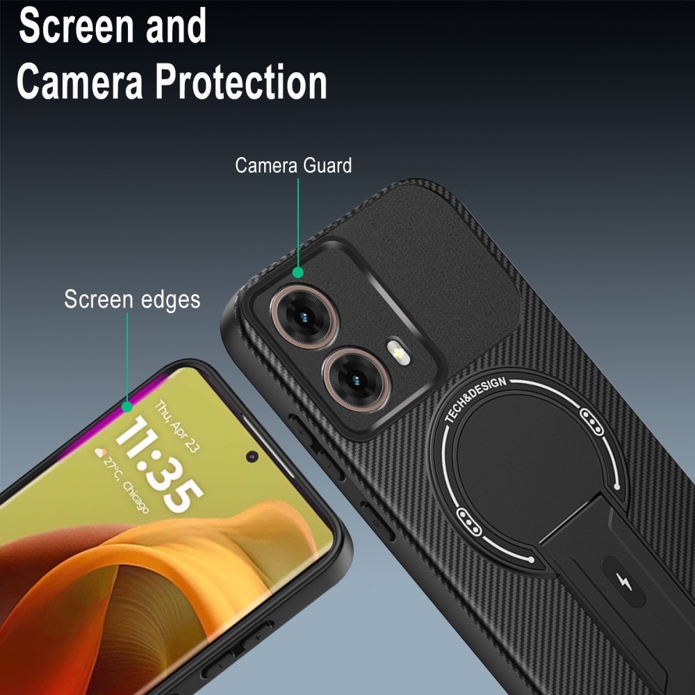 Σκληρή Πλάτη PC+TPU για Motorola Moto G85 5G σε Μπλε χρώμα με ενσωματωμένο Stand και υφή Carbon Fiber για μέγιστη προστασία.