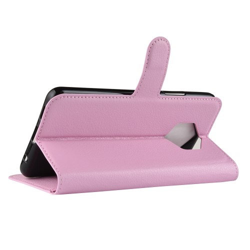 Θήκη Nokia 9 PureView OEM Litchi Texture Leather με βάση στήριξης, υποδοχές καρτών και μαγνητικό κούμπωμα Flip Wallet δερματίνη ροζ