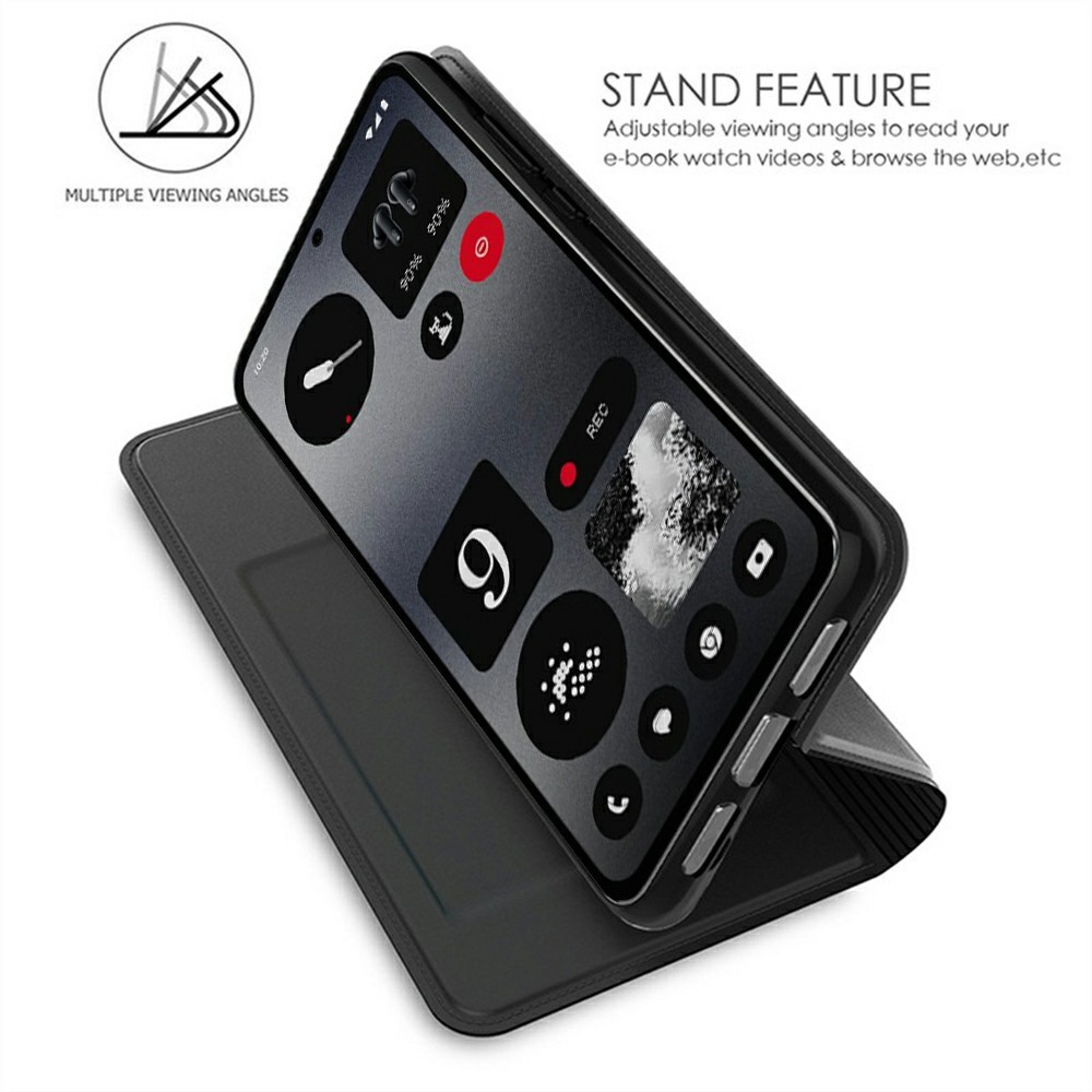 Θήκη Nothing Phone (3a) 5G Skin Pro Series με βάση στήριξης, υποδοχή καρτών και μαγνητικό κούμπωμα Flip Wallet από συνθετικό δέρμα και TPU μαύρο