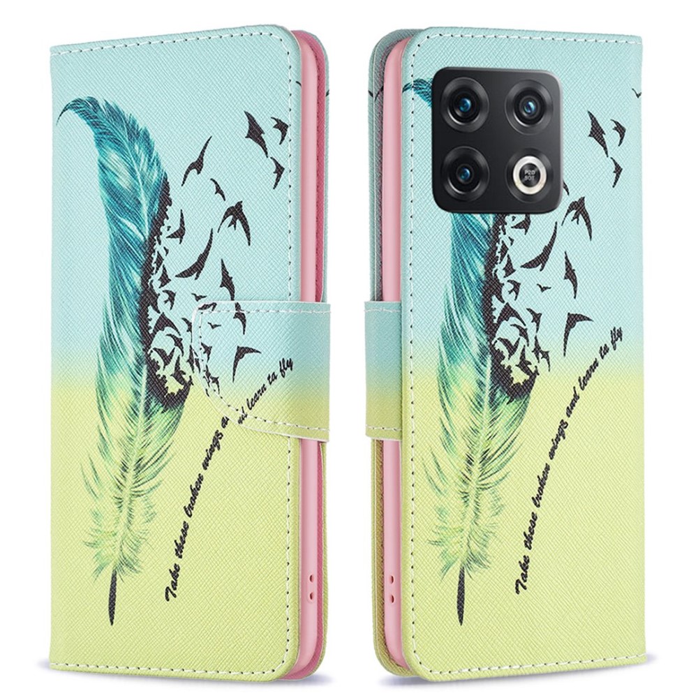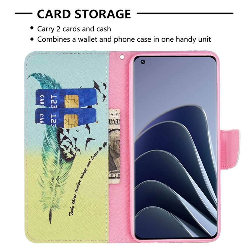 Θήκη OnePlus 10 Pro 5G OEM Feather & Birds με βάση στήριξης, υποδοχές καρτών και μαγνητικό κούμπωμα Flip Wallet από συνθετικό δέρμα και TPU πολύχρωμο