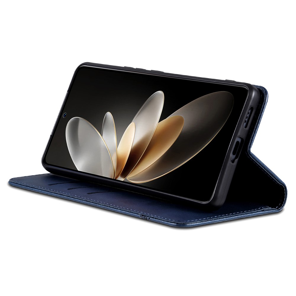 Θήκη Oppo Find X8 Pro 5G AZNS Litchi Retro V4 Texture Leather με βάση στήριξης, υποδοχές καρτών και μαγνητικό κούμπωμα μπλε