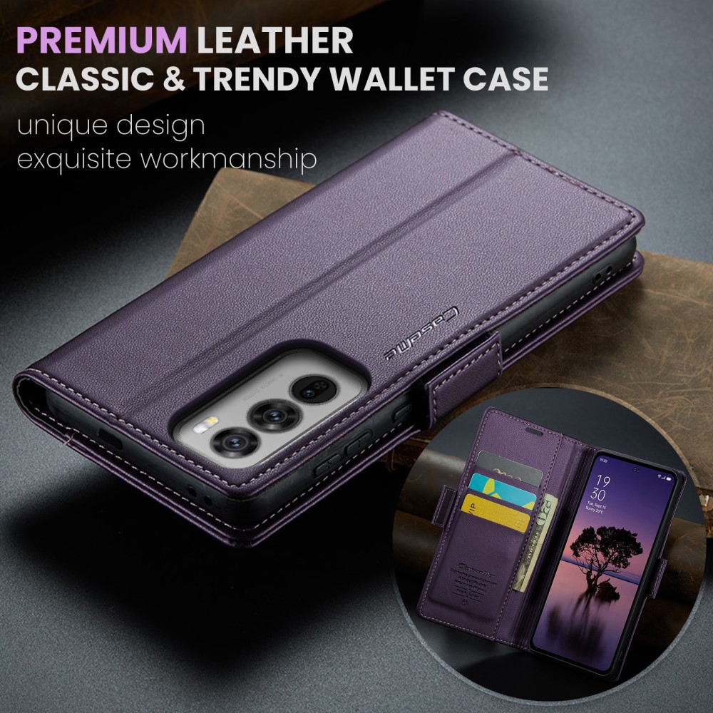 Θήκη Oppo Reno12 Pro 5G CASEME 023 Series Πορτοφόλι με βάση στήριξης, υποδοχές καρτών και μαγνητικό κούμπωμα από συνθετικό δέρμα και TPU μωβ