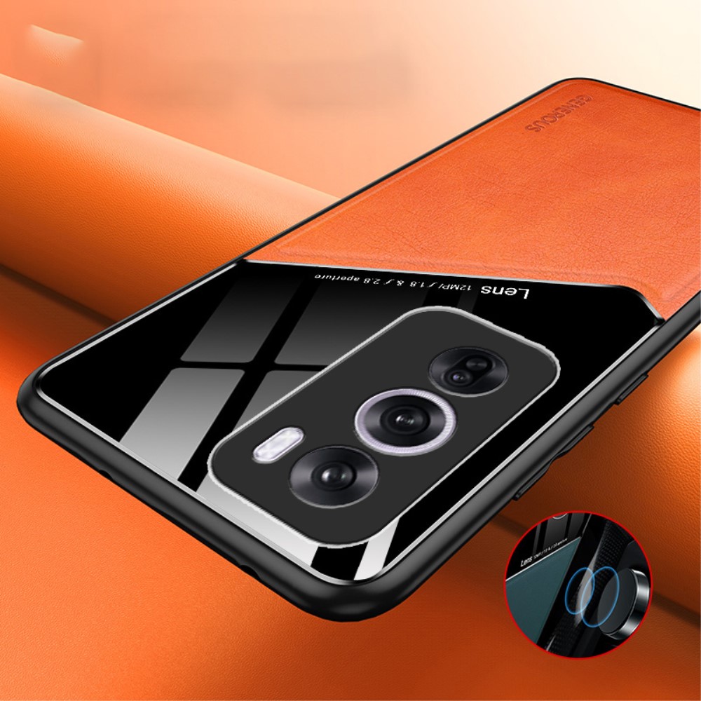 Θήκη Oppo Reno12 Pro 5G OEM Magnetic Glass Series πλάτη με ενσωματωμένο μαγνήτη και υποστήριξη μαγνητικής βάσης από συνθετικό δέρμα TPU κόκκινο