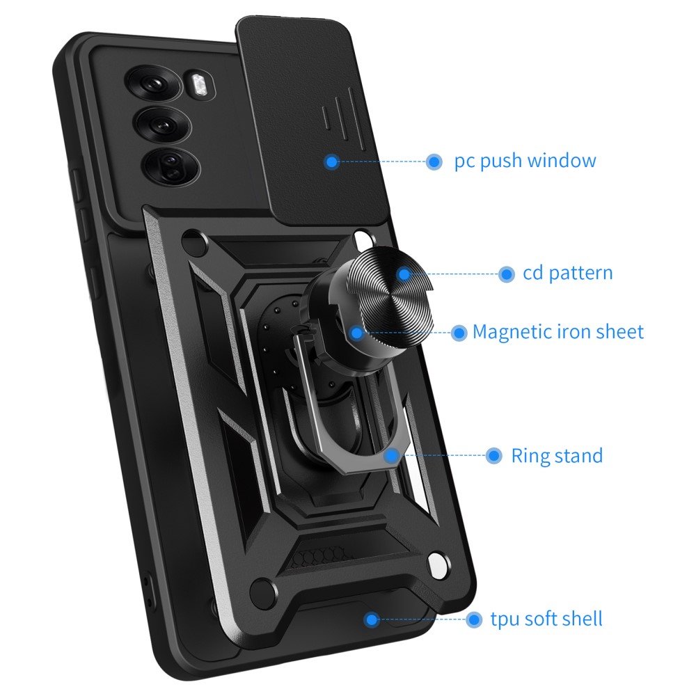 Θήκη Oppo Reno12 Pro 5G Mad Mask Camshield Armor Guard Πλάτη με προστασία για την κάμερα, Kickstand και Βάση στήριξης από σκλήρό Premium TPU μαύρο