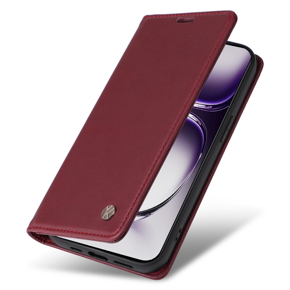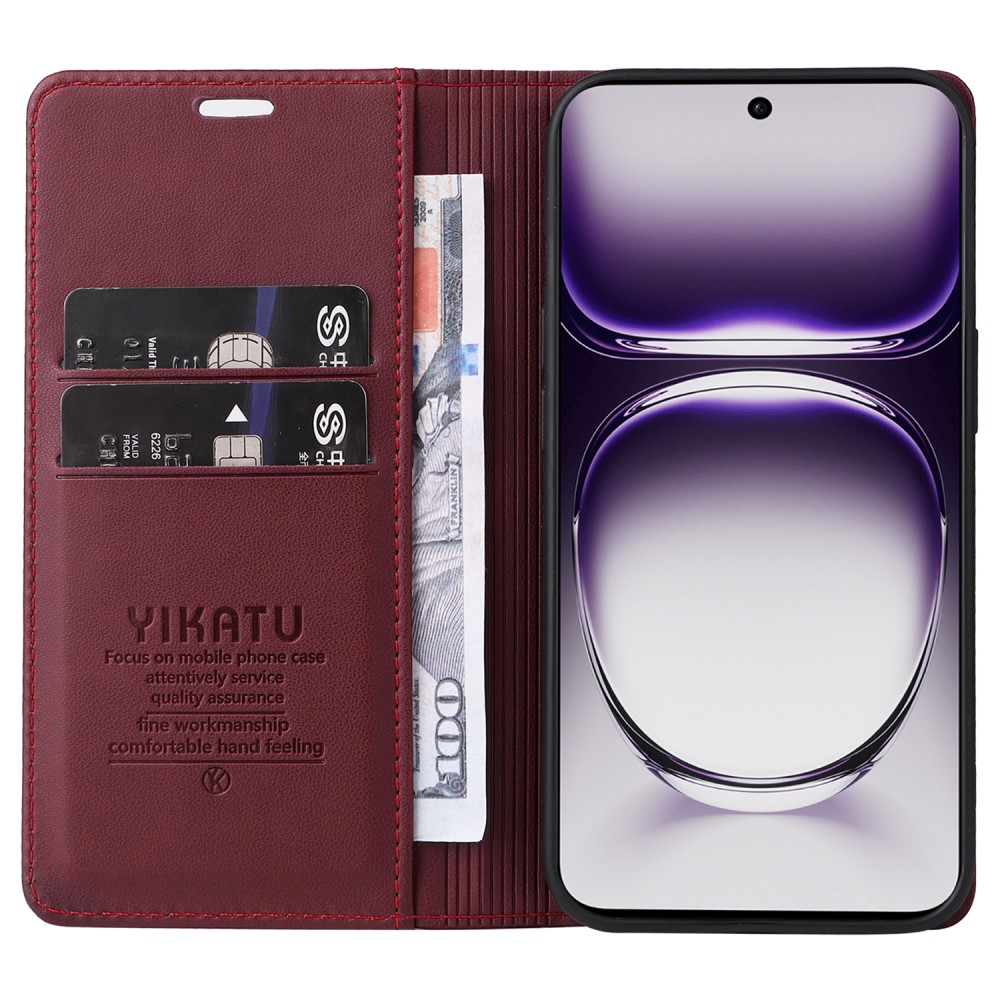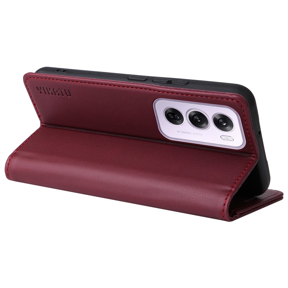 Θήκη Oppo Reno12 Pro 5G YIKATU Folio Series με βάση στήριξης, υποδοχή καρτών και μαγνητικό κούμπωμα Flip Wallet από συνθετικό δέρμα και TPU κόκκινο σκούρο