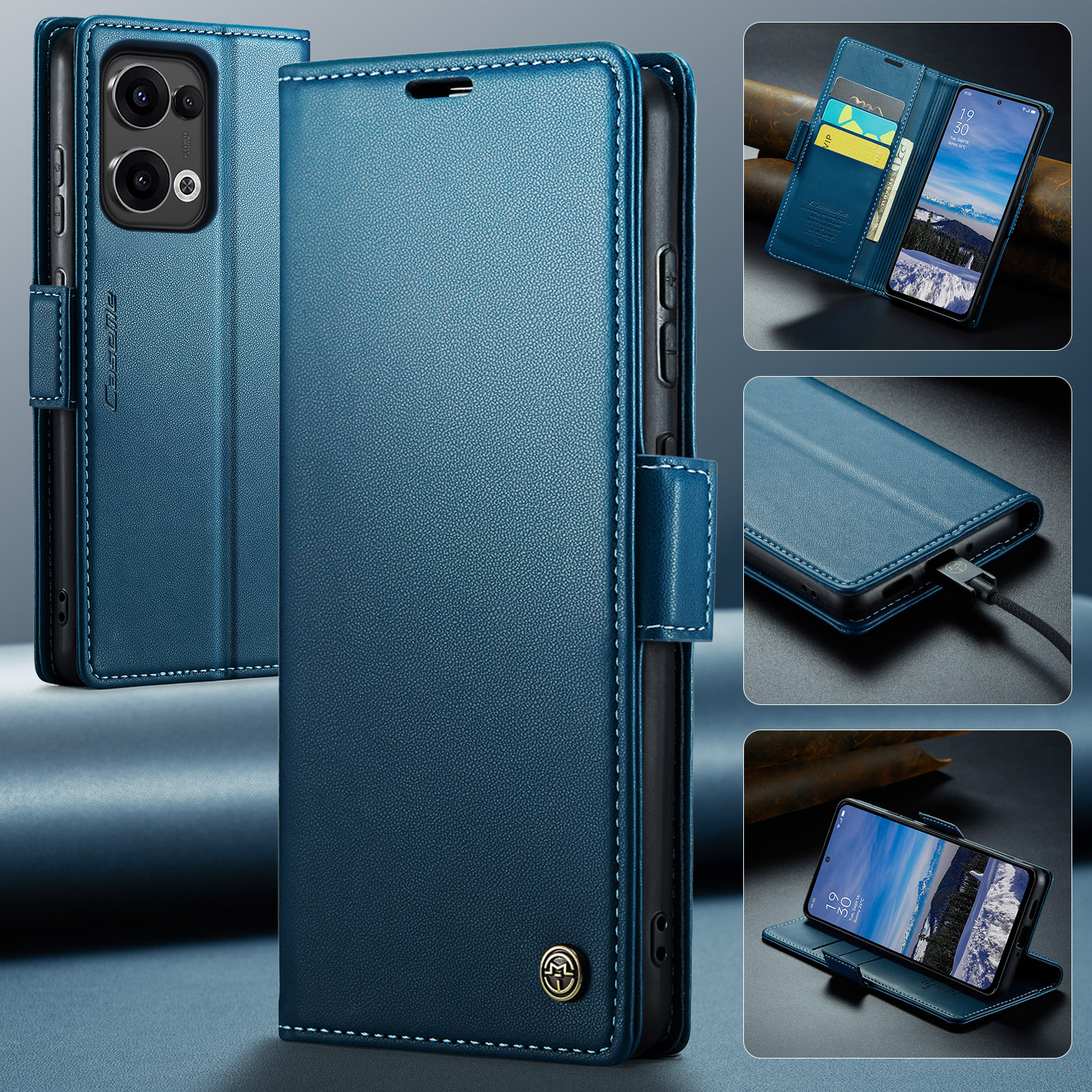 Θήκη Oppo Reno13 5G CASEME 023 Series Πορτοφόλι με βάση στήριξης, υποδοχές καρτών και μαγνητικό κούμπωμα από συνθετικό δέρμα και TPU μπλε