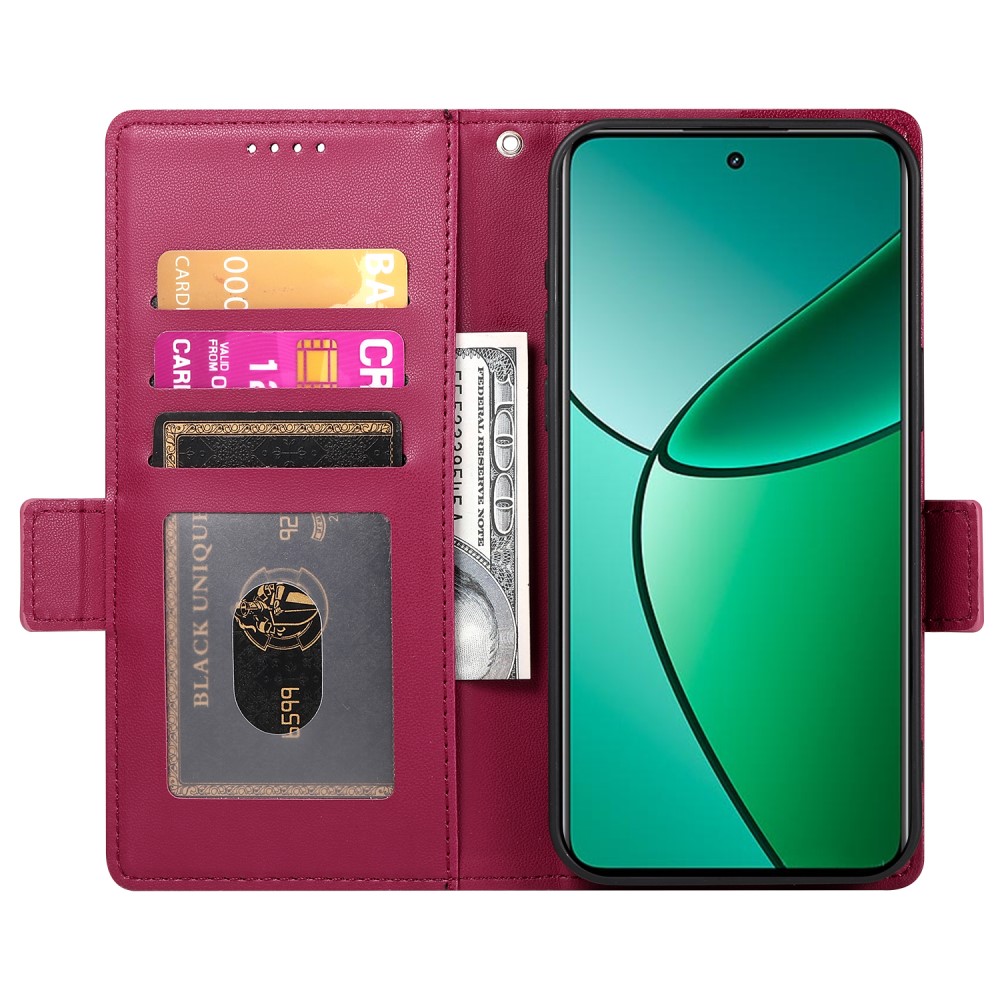 Θήκη Realme 14 Pro 5G Mad Mask Leather Wallet Case V7 με βάση στήριξης, υποδοχές καρτών και εσωτερικό μαγνητικό κούμπωμα Flip Wallet από συνθετικό δέρμα κόκκινο σκούρο