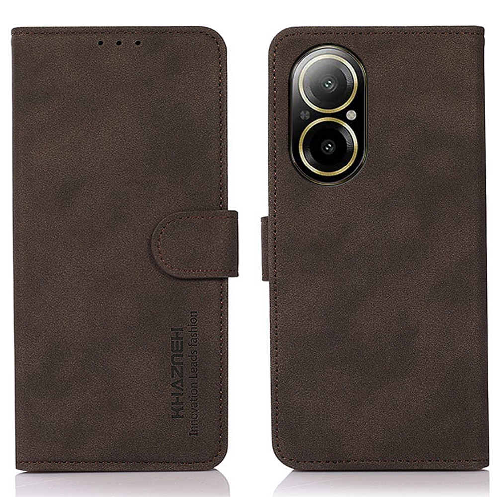 Θήκη Realme C67 4G KHAZNEH Litchi Skin Texture Leather με βάση στήριξης, υποδοχές καρτών και μαγνητικό κούμπωμα καφέ