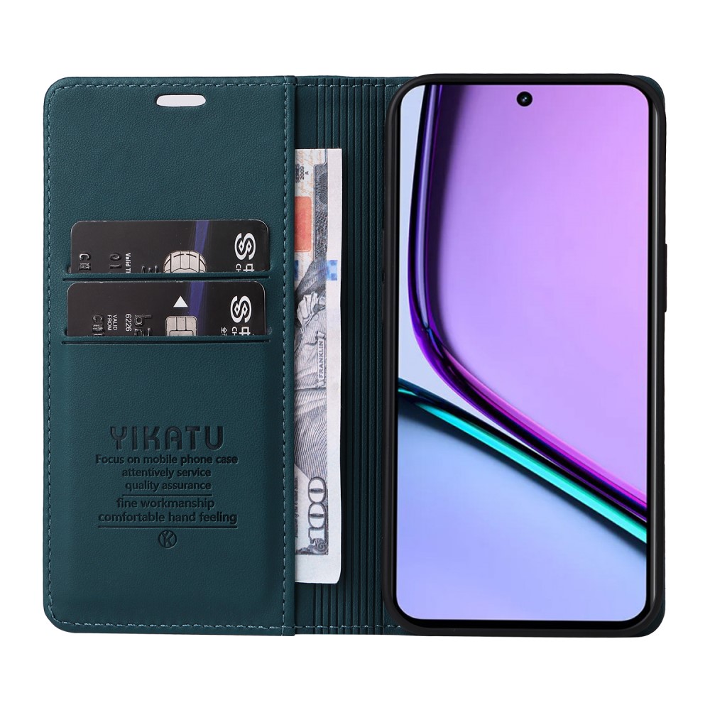 Θήκη Realme C67 4G YIKATU Folio Series με βάση στήριξης, υποδοχή καρτών και μαγνητικό κούμπωμα Flip Wallet από συνθετικό δέρμα και TPU πράσινο