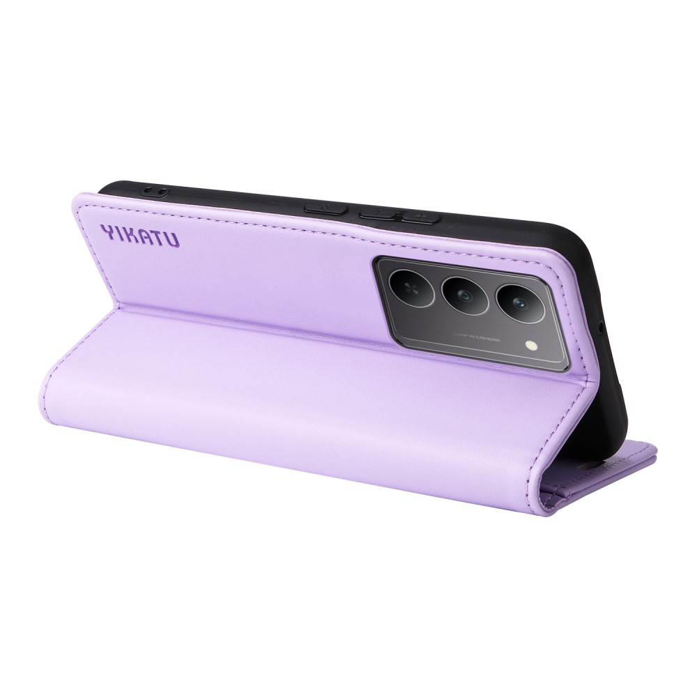 Θήκη Realme C75 YIKATU Folio Series με βάση στήριξης, υποδοχή καρτών και μαγνητικό κούμπωμα Flip Wallet από συνθετικό δέρμα και TPU μωβ ανοιχτό