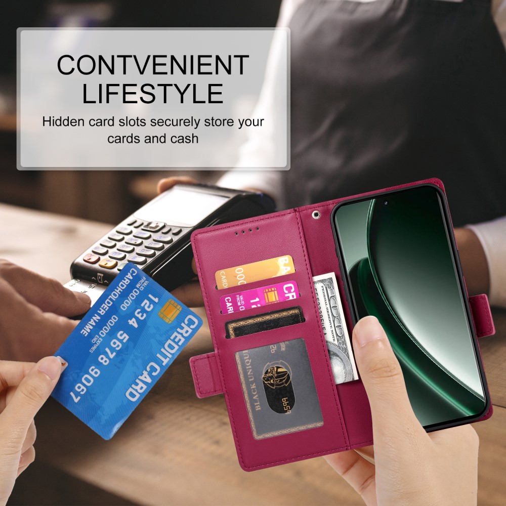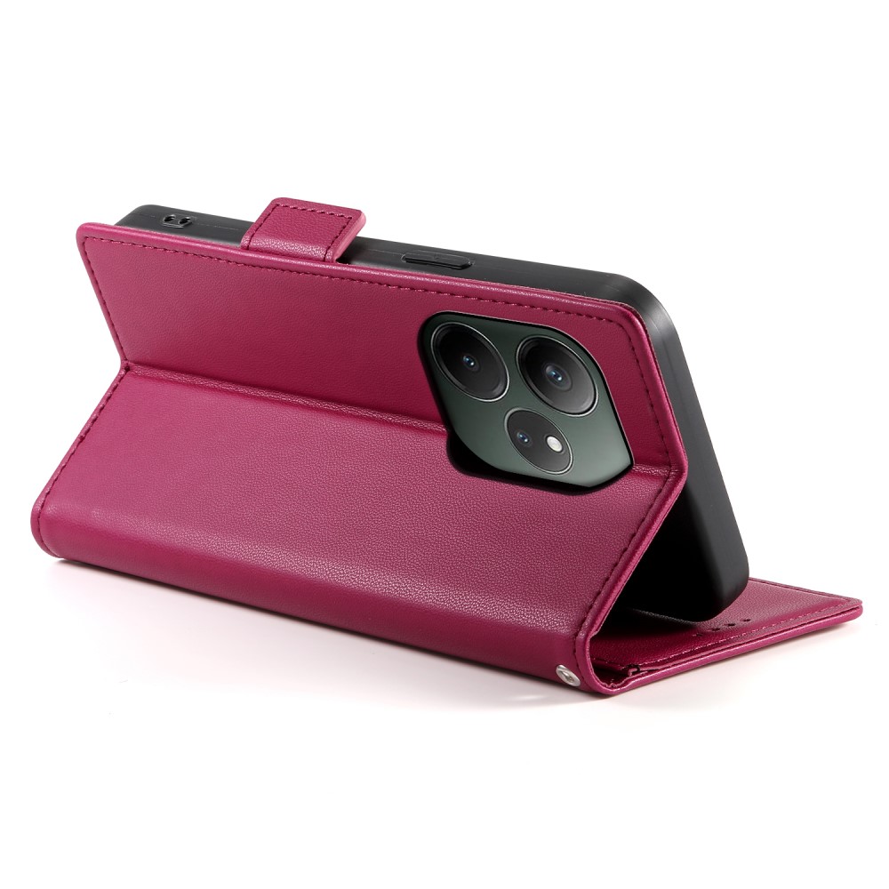 Θήκη Realme GT 6 5G / GT 6T 5G DIERFENG DF 010 Foldable Series με βάση στήριξης, υποδοχή καρτών και μαγνητικό κούμπωμα Flip Wallet από συνθετικό δέρμα και εσωτερικό TPU κόκκινο σκούρο