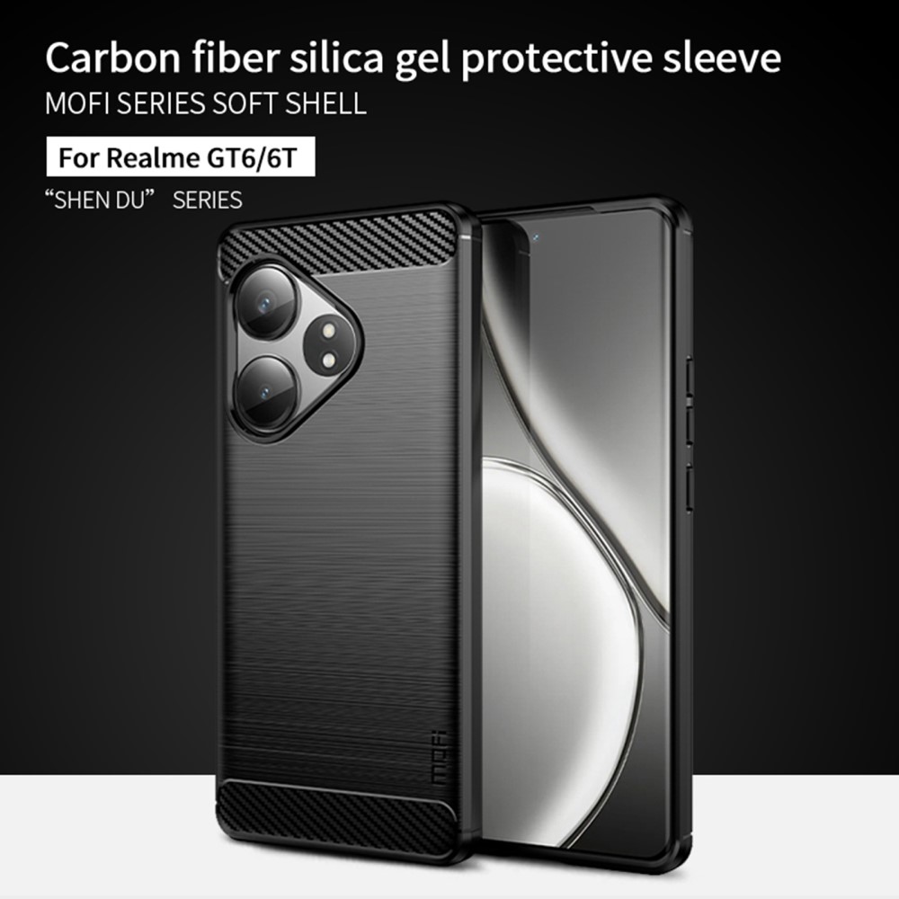 Θήκη Realme GT 6 5G / GT 6T 5G MOFI Brushed V2 TPU Carbon Πλάτη μαύρο