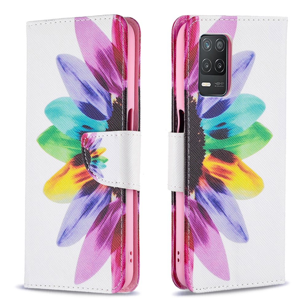 Θήκη Realme 8 5G OEM Colorful Petals με βάση στήριξης, υποδοχές καρτών και μαγνητικό κούμπωμα Flip Wallet από συνθετικό δέρμα και TPU