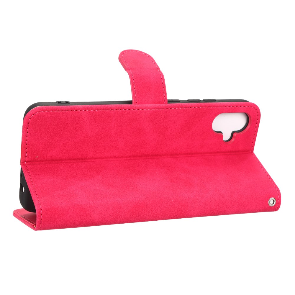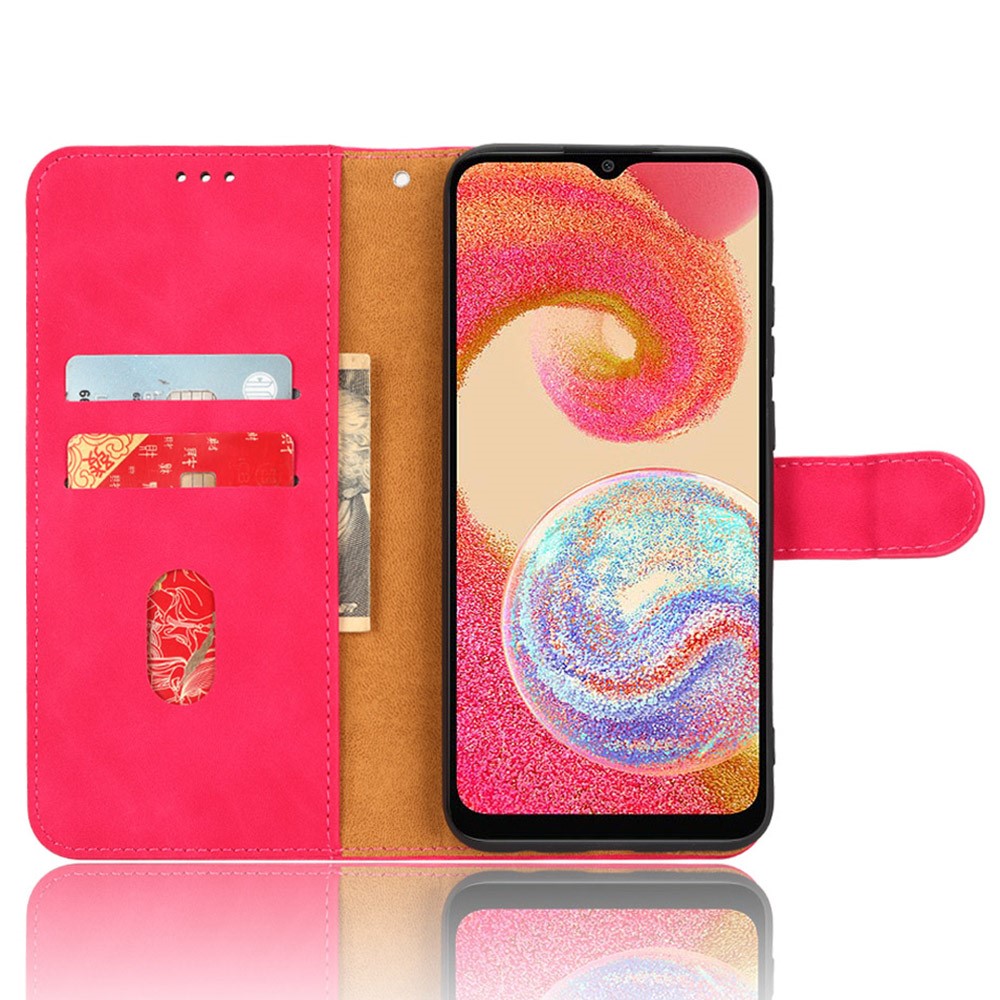 Θήκη Samsung Galaxy A04e / F04 OEM Leather Skin touch Feeling με βάση στήριξης, υποδοχές καρτών και μαγνητικό κούμπωμα φούξια