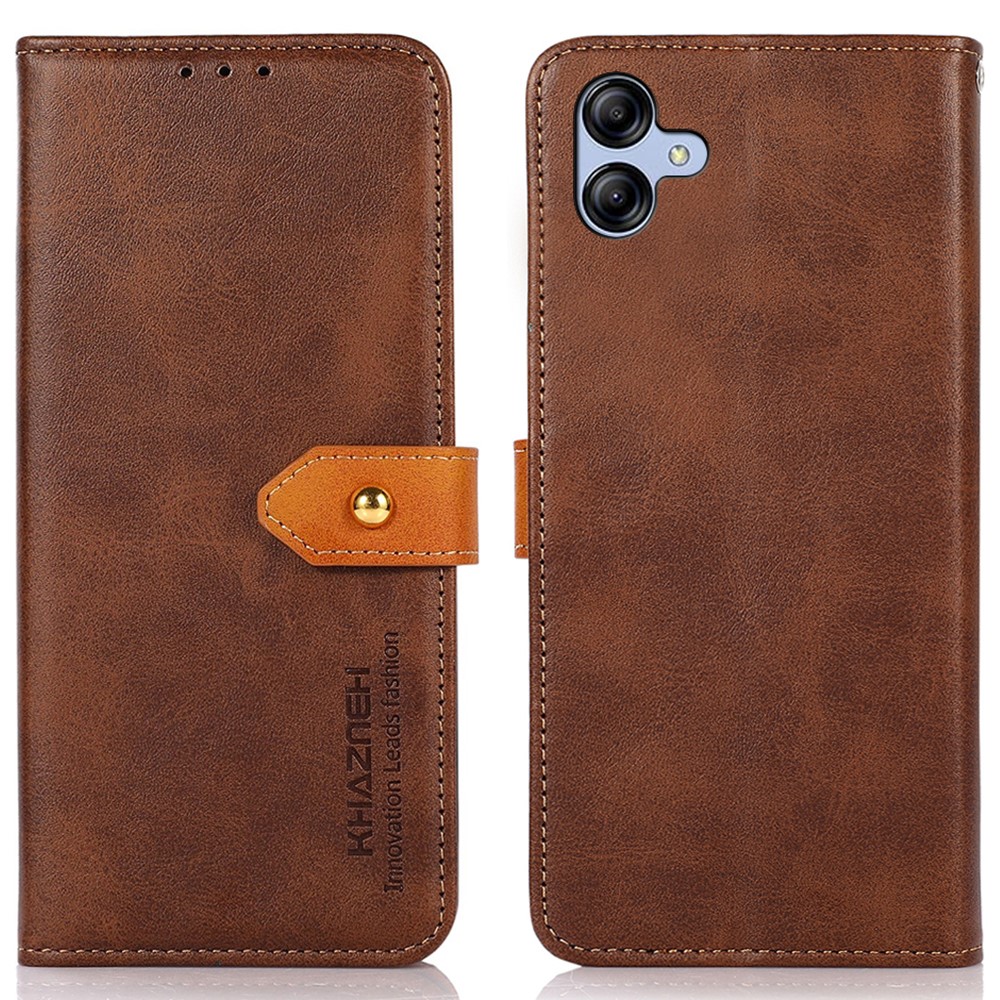 Η θήκη για το Samsung Galaxy A04e / F04 σε χρώμα καφέ της εταιρίας KHAZNEH συνδυάζει ποιότητα και αισθητική. Κατασκευασμένη από άριστης ποιότητας συνθετικό δέρμα, προσφέρει ανθεκτικότητα και κομψότητα, διατηρώντας την αίσθηση της πολυτέλειας στο χρόνο.