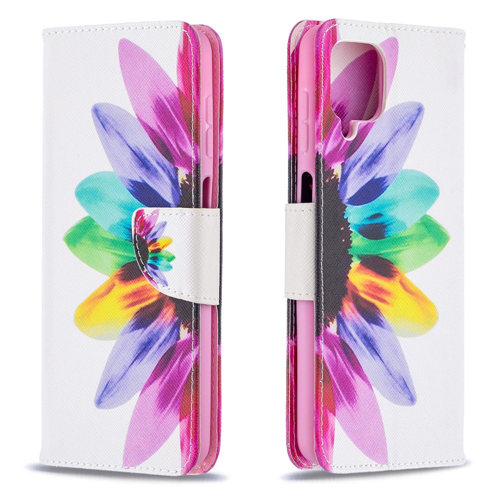 Θήκη Samsung Galaxy A12 / M12 OEM Colorful Petals με βάση στήριξης, υποδοχές καρτών και μαγνητικό κούμπωμα Flip Wallet από συνθετικό δέρμα και TPU