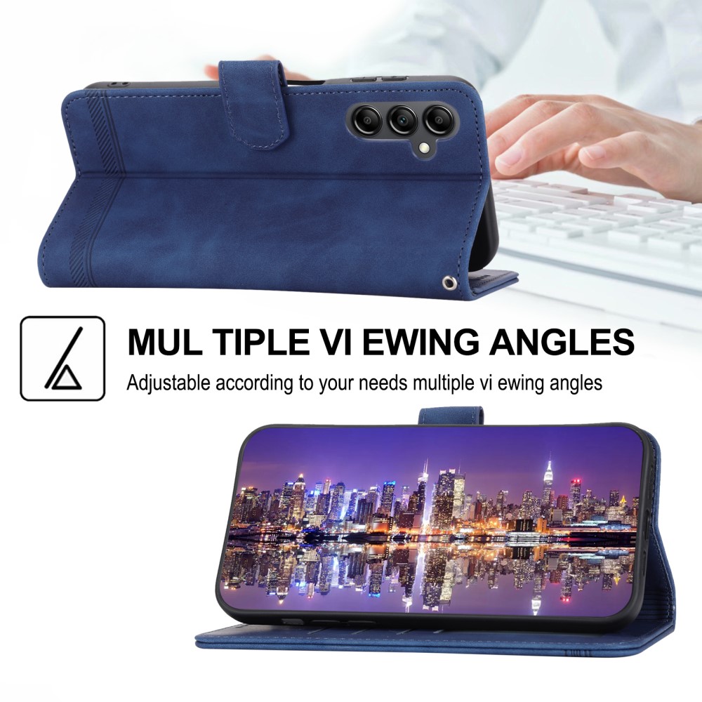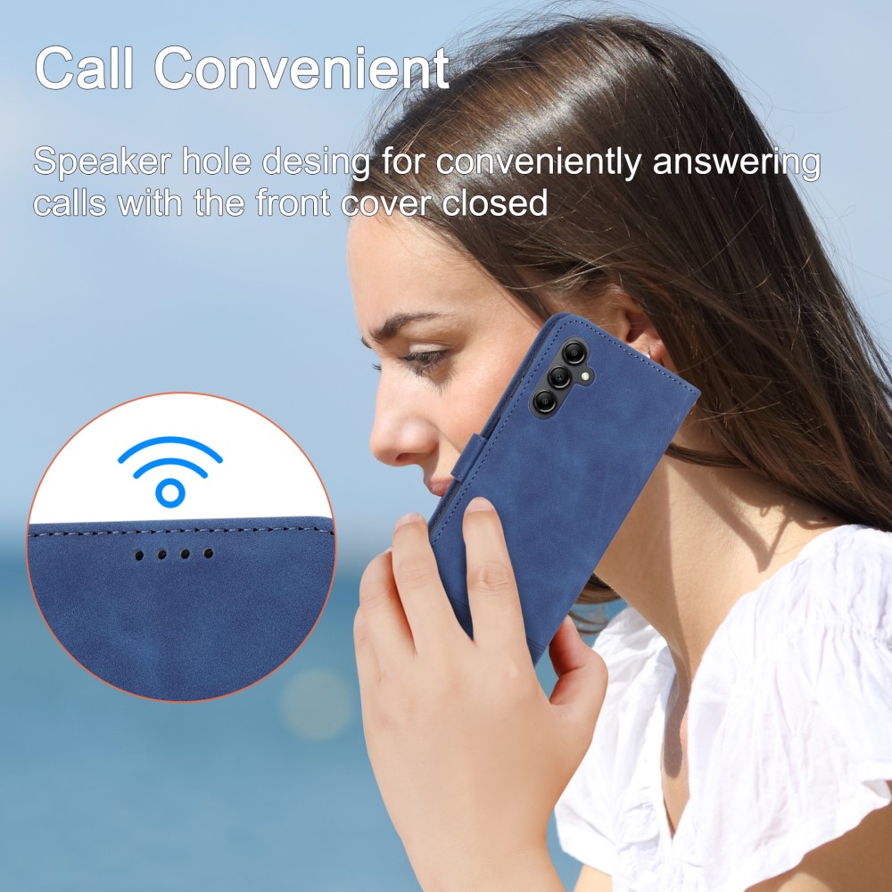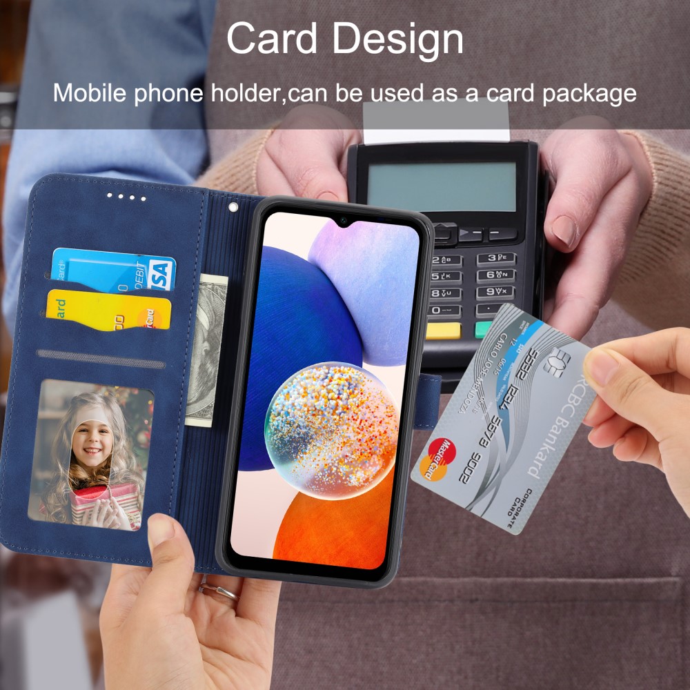 Θήκη Samsung Galaxy A14 4G / 5G DIERFENG DF 03 Foldable Series με βάση στήριξης, υποδοχή καρτών και μαγνητικό κούμπωμα Flip Wallet από συνθετικό δέρμα και εσωτερικό TPU μπλε