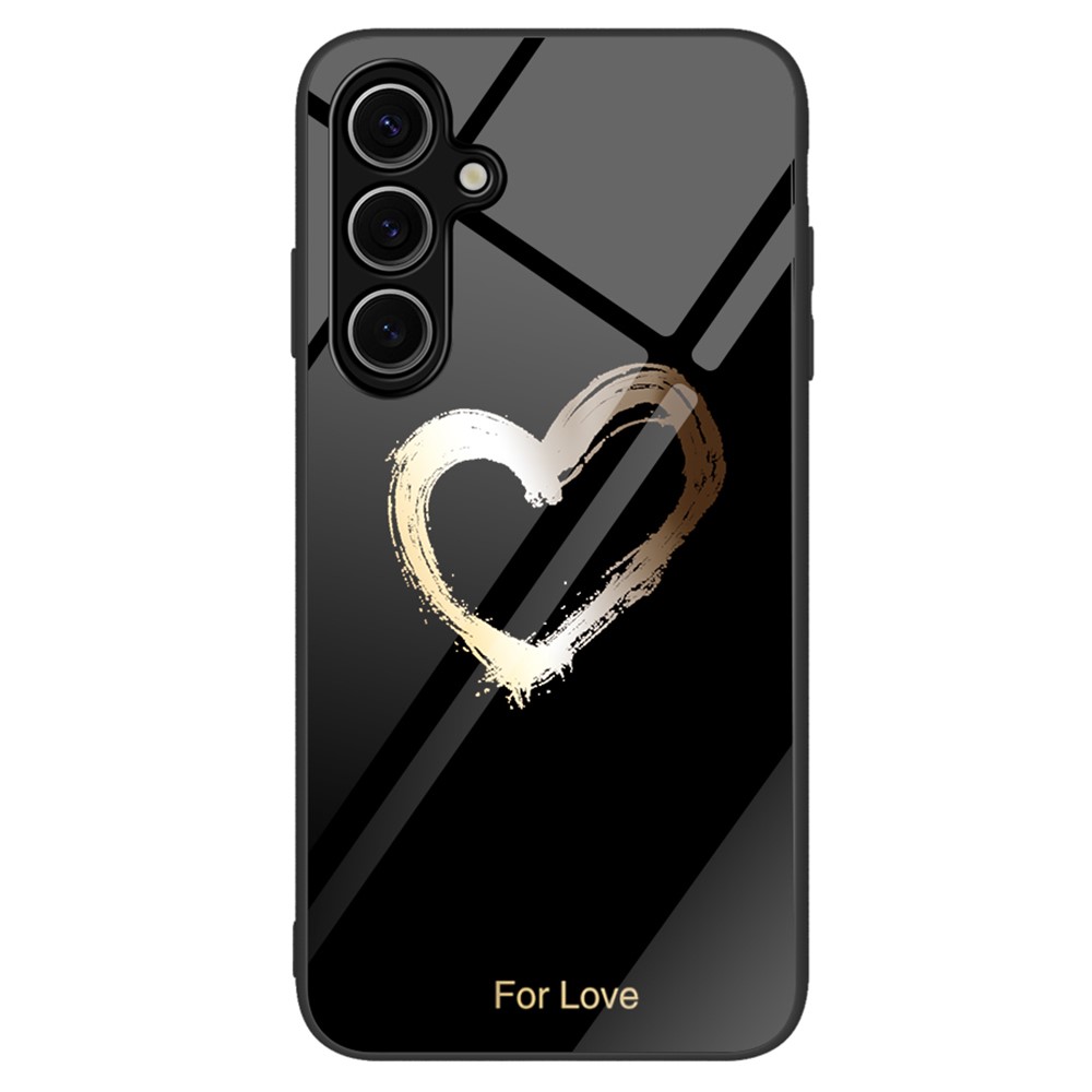 Θήκη Samsung Galaxy A16 4G / A16 5G OEM σχέδιο Black Heart με πλάτη από Tempered Glass και εσωτερικό TPU μαύρο