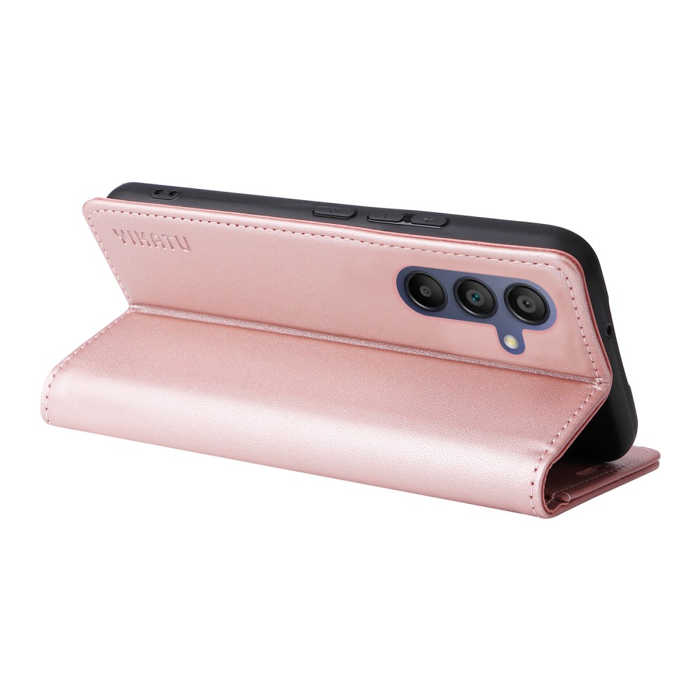 Θήκη Samsung Galaxy A16 4G / A16 5G YIKATU Folio Series με βάση στήριξης, υποδοχή καρτών και μαγνητικό κούμπωμα Flip Wallet από συνθετικό δέρμα και TPU ροζ χρυσό