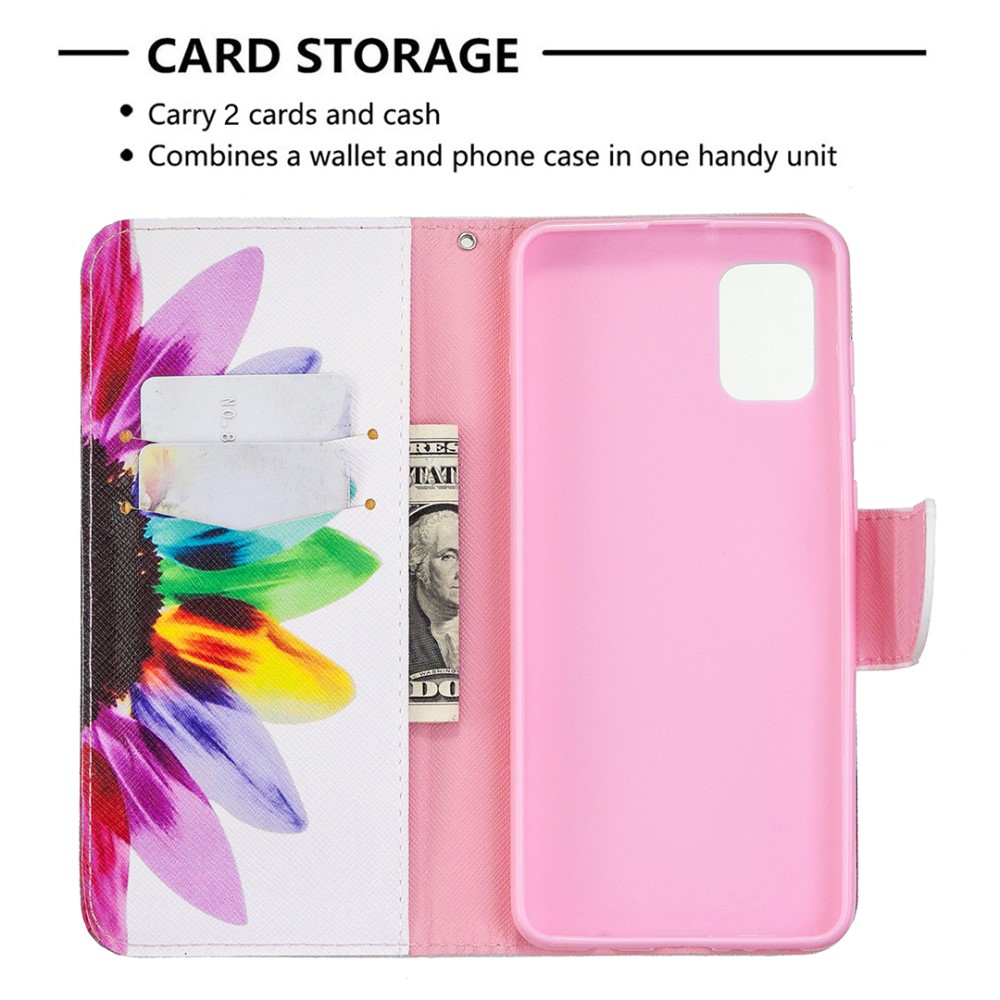 Θήκη Samsung Galaxy A31 OEM Colorful Petals με βάση στήριξης, υποδοχές καρτών και μαγνητικό κούμπωμα Flip Wallet από συνθετικό δέρμα και TPU