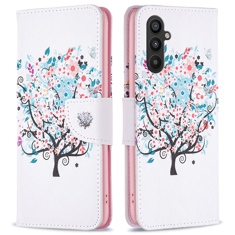 Θήκη Samsung Galaxy A34 5G OEM Flowered Tree με βάση στήριξης, υποδοχές καρτών και μαγνητικό κούμπωμα Flip Wallet από συνθετικό δέρμα και TPU