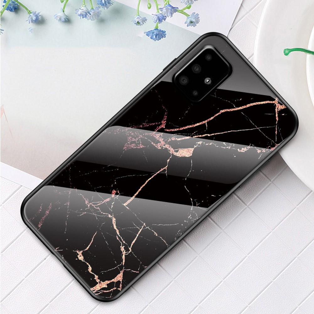 Θήκη Samsung Galaxy A51 OEM σχέδιο Marble με Πλάτη Tempered Glass TPU μαύρο / χρυσό