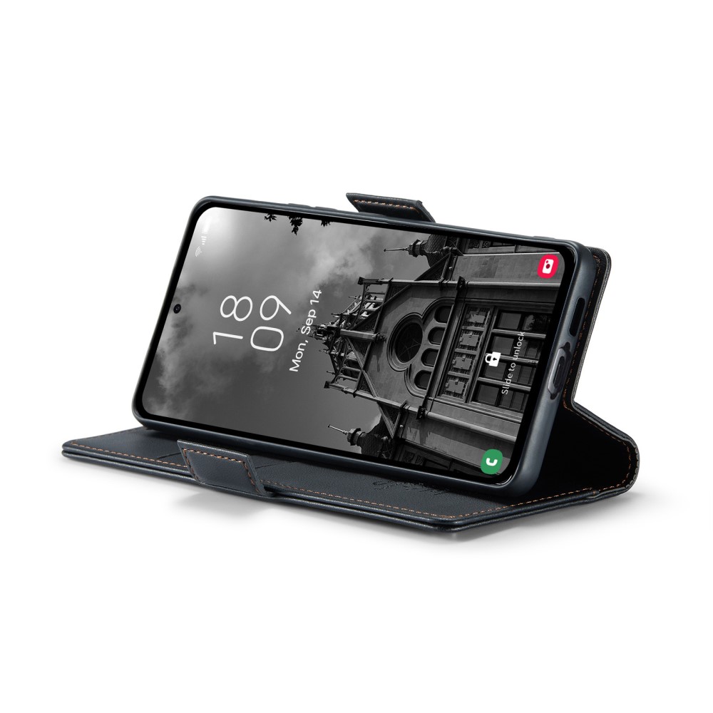 Θήκη Samsung Galaxy A55 5G CASEME 023 Series Πορτοφόλι με βάση στήριξης, υποδοχές καρτών και μαγνητικό κούμπωμα από συνθετικό δέρμα και TPU μαύρο