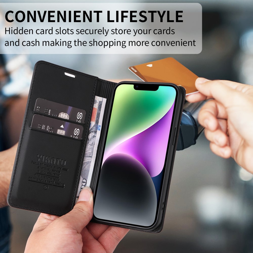 Θήκη Samsung Galaxy A56 YIKATU Folio Series v5 με βάση στήριξης, υποδοχή καρτών και μαγνητικό κούμπωμα Flip Wallet από συνθετικό δέρμα και TPU μαύρο