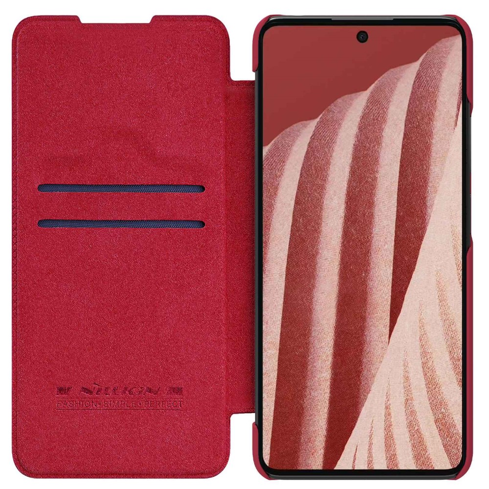 Θήκη Samsung Galaxy A73 5G NiLLkin Qin Series με προστασία κάμερας Flip Wallet από σκληρό πλαστικό και συνθετικό δέρμα κόκκινο