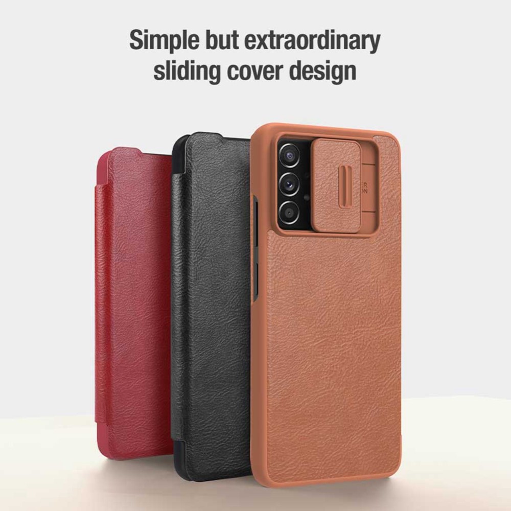 Θήκη Samsung Galaxy A73 5G NiLLkin Qin Series με προστασία κάμερας Flip Wallet από σκληρό πλαστικό και συνθετικό δέρμα μαύρο