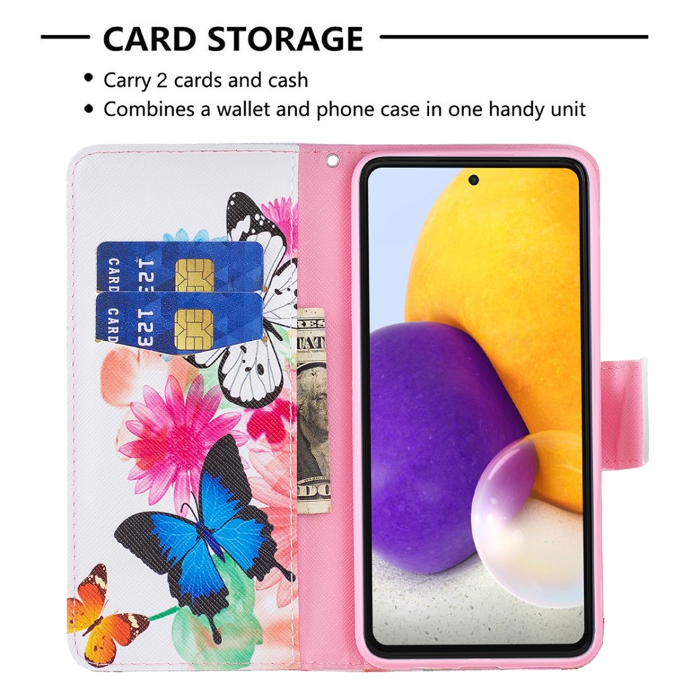 Θήκη Samsung Galaxy A73 5G OEM Vivid Butterflies με βάση στήριξης, υποδοχές καρτών και μαγνητικό κούμπωμα Flip Wallet από συνθετικό δέρμα και TPU