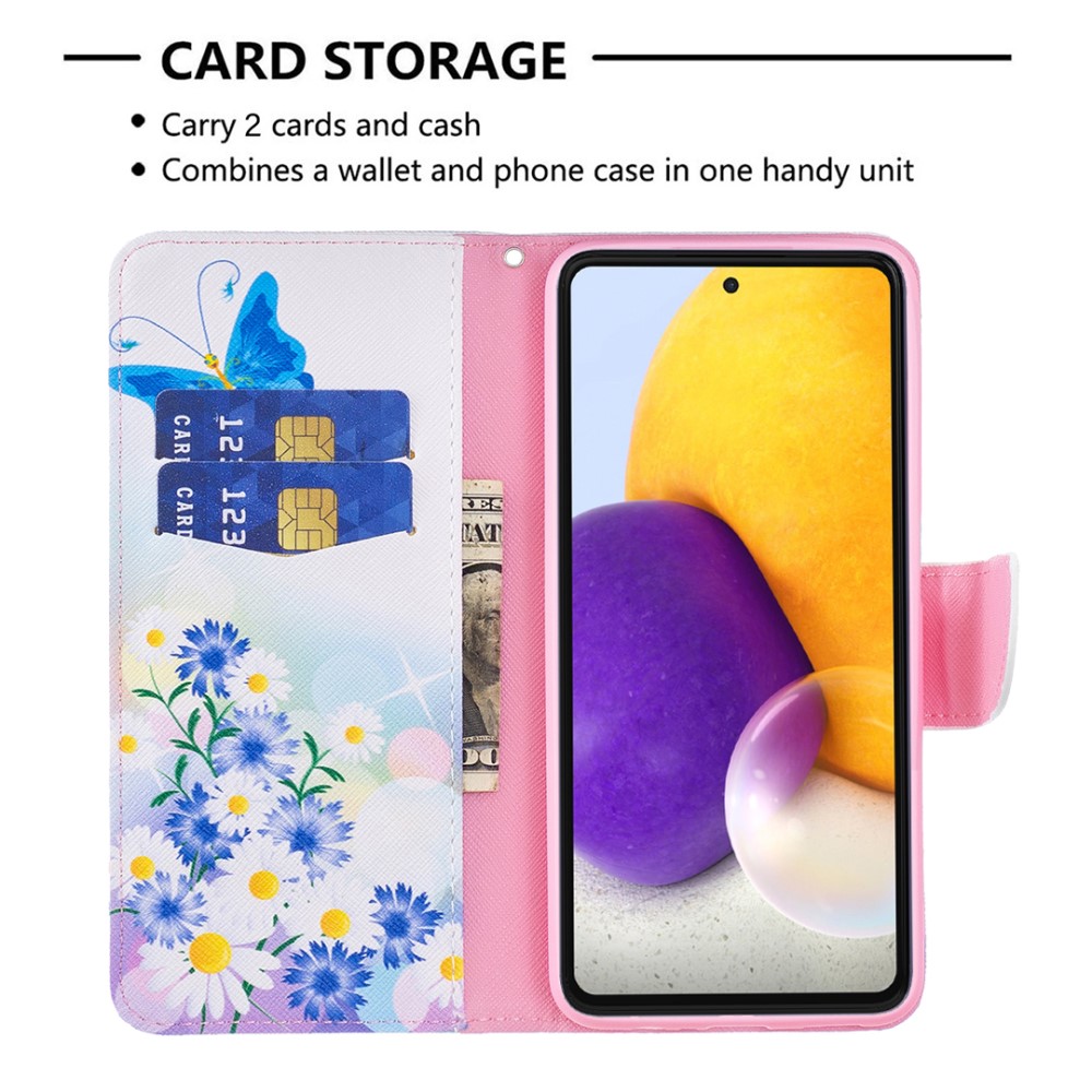 Θήκη Samsung Galaxy A73 5G OEM Blue Butterfly & Flowers με βάση στήριξης, υποδοχές καρτών και μαγνητικό κούμπωμα Flip Wallet από συνθετικό δέρμα και TPU