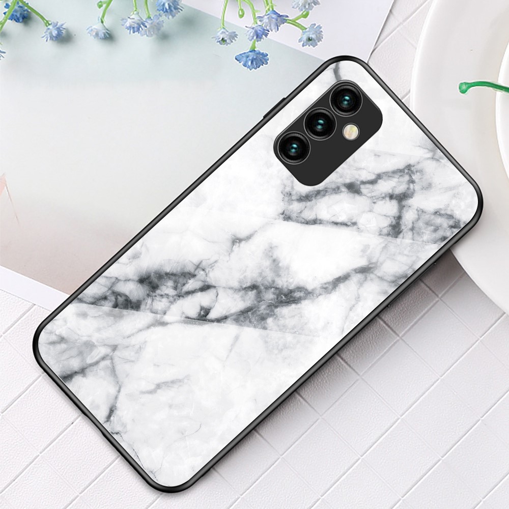 Θήκη Samsung Galaxy M23 5G OEM σχέδιο Marble με Πλάτη Tempered Glass TPU λευκό