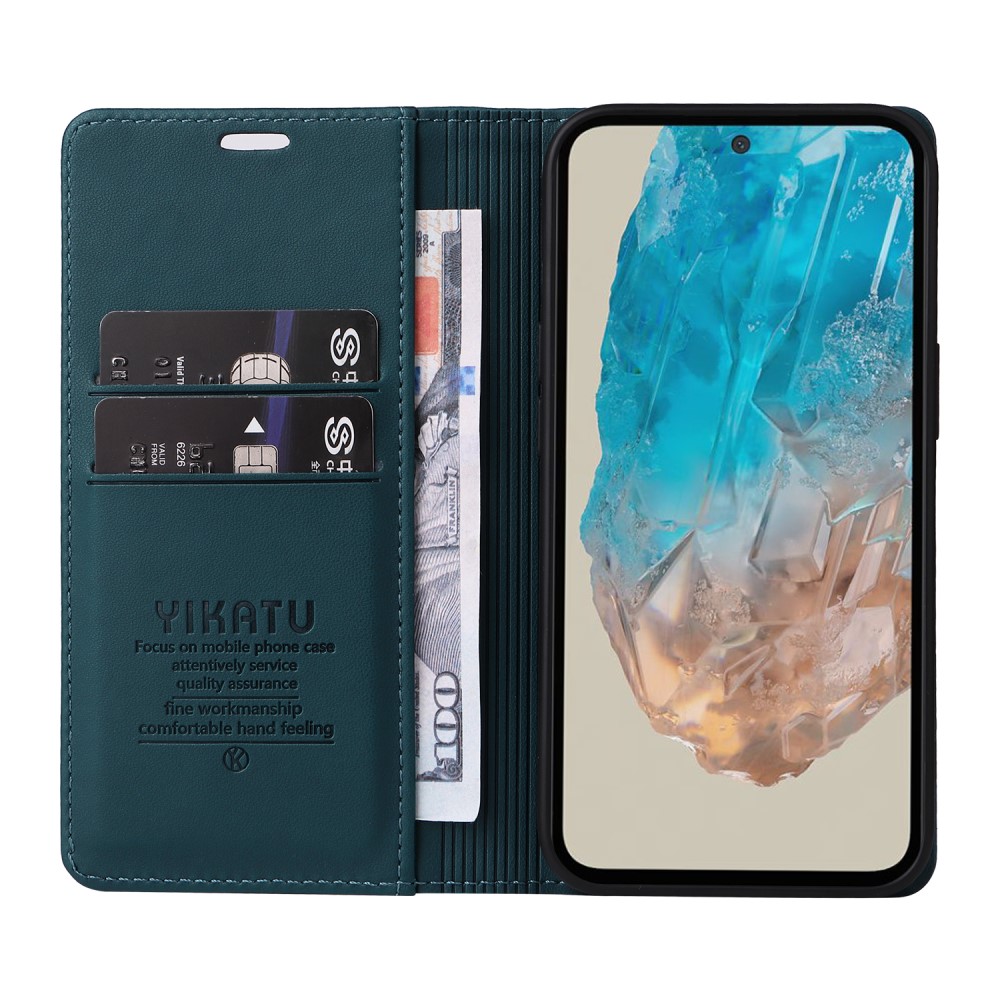 Η θήκη YIKATU Folio Series για το Samsung Galaxy M35 5G είναι κατασκευασμένη από υψηλής ποιότητας συνθετικό δέρμα και TPU, προσφέροντας διακριτική αισθητική και αντοχή στον χρόνο.