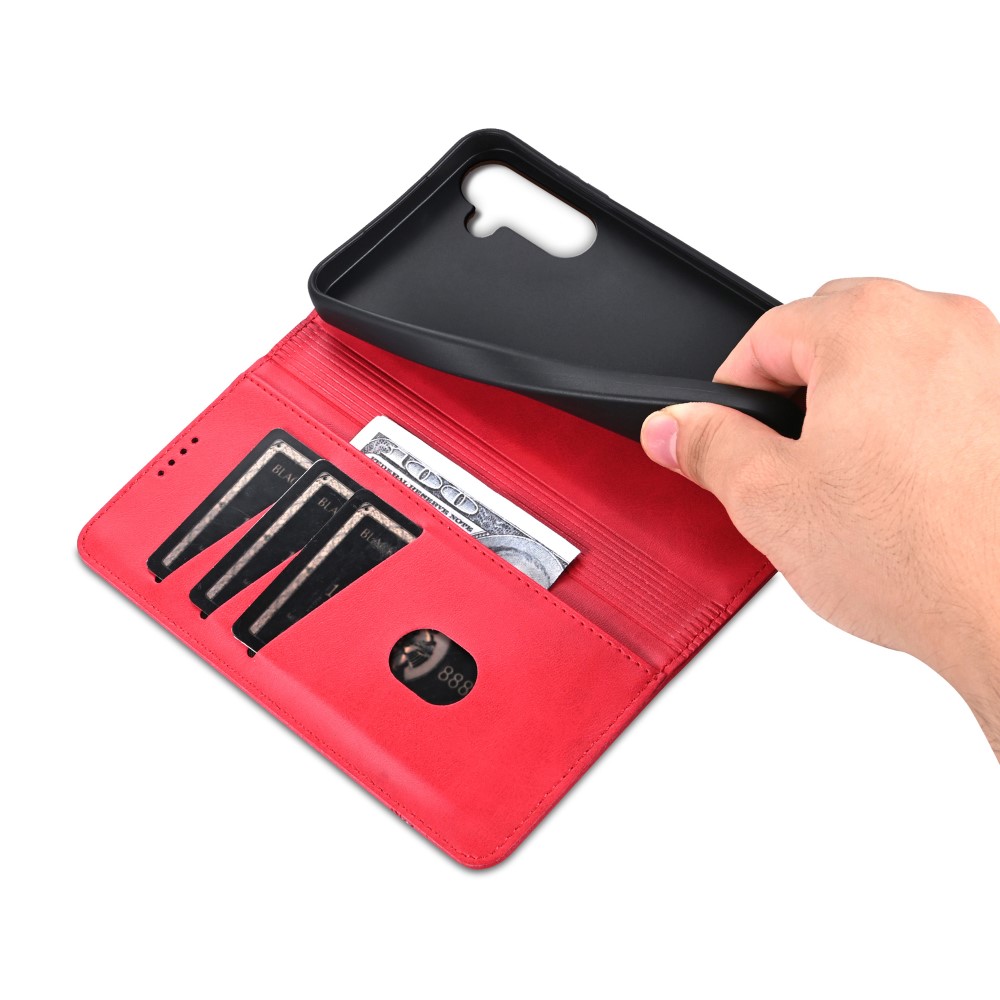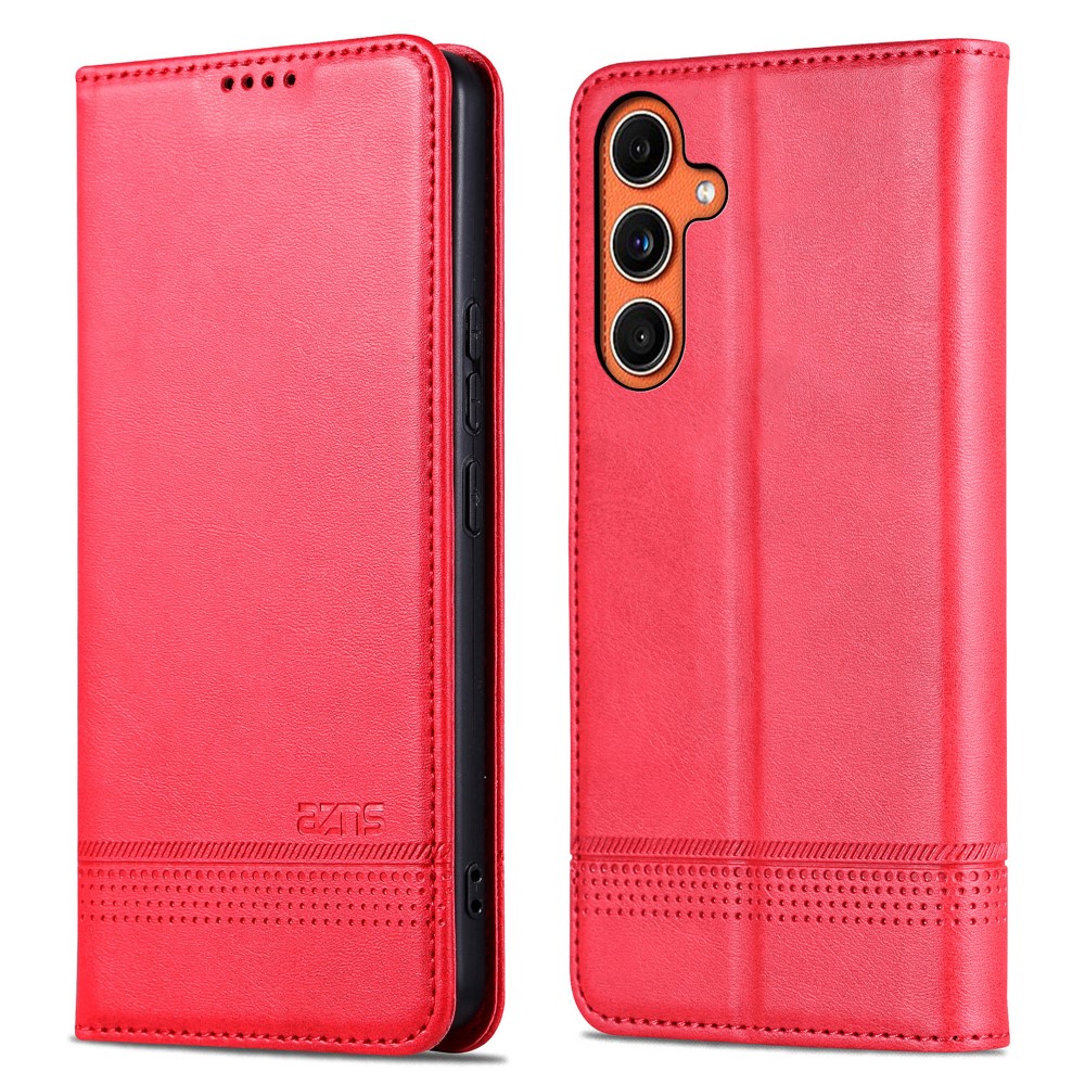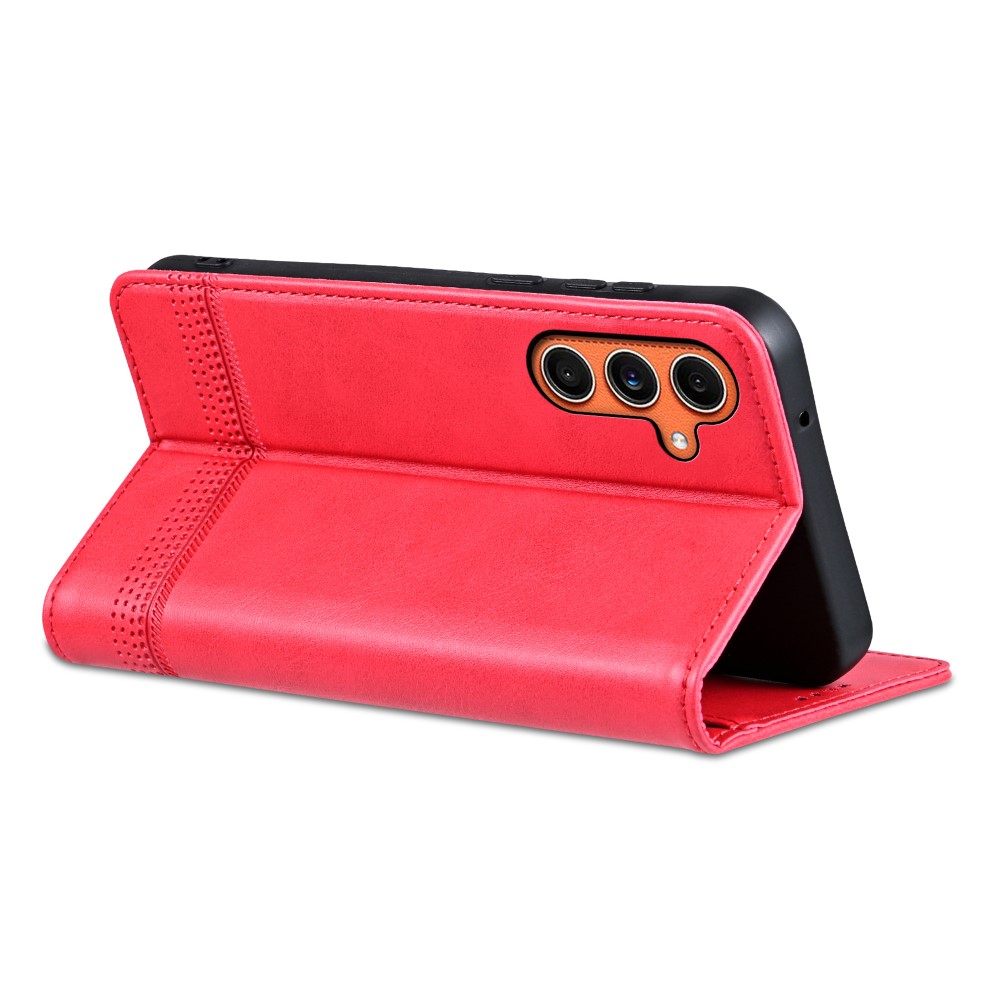 Θήκη Samsung Galaxy M55 5G AZNS Litchi Retro V4 Texture Leather με βάση στήριξης, υποδοχές καρτών και μαγνητικό κούμπωμα κόκκινο