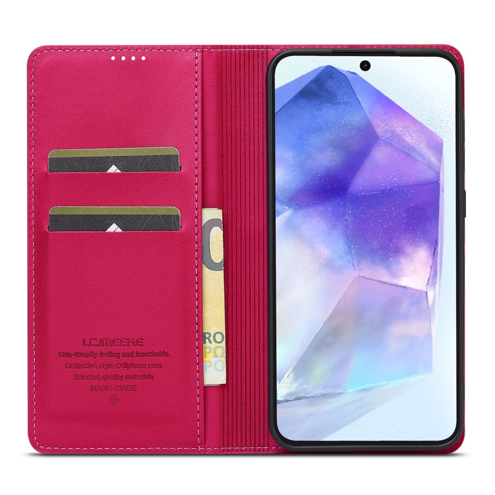 Θήκη Samsung Galaxy S24 FE 5G LC.IMEEKE PU Leather Series V2 με βάση στήριξης, υποδοχές καρτών και μαγνητικό κούμπωμα κόκκινο