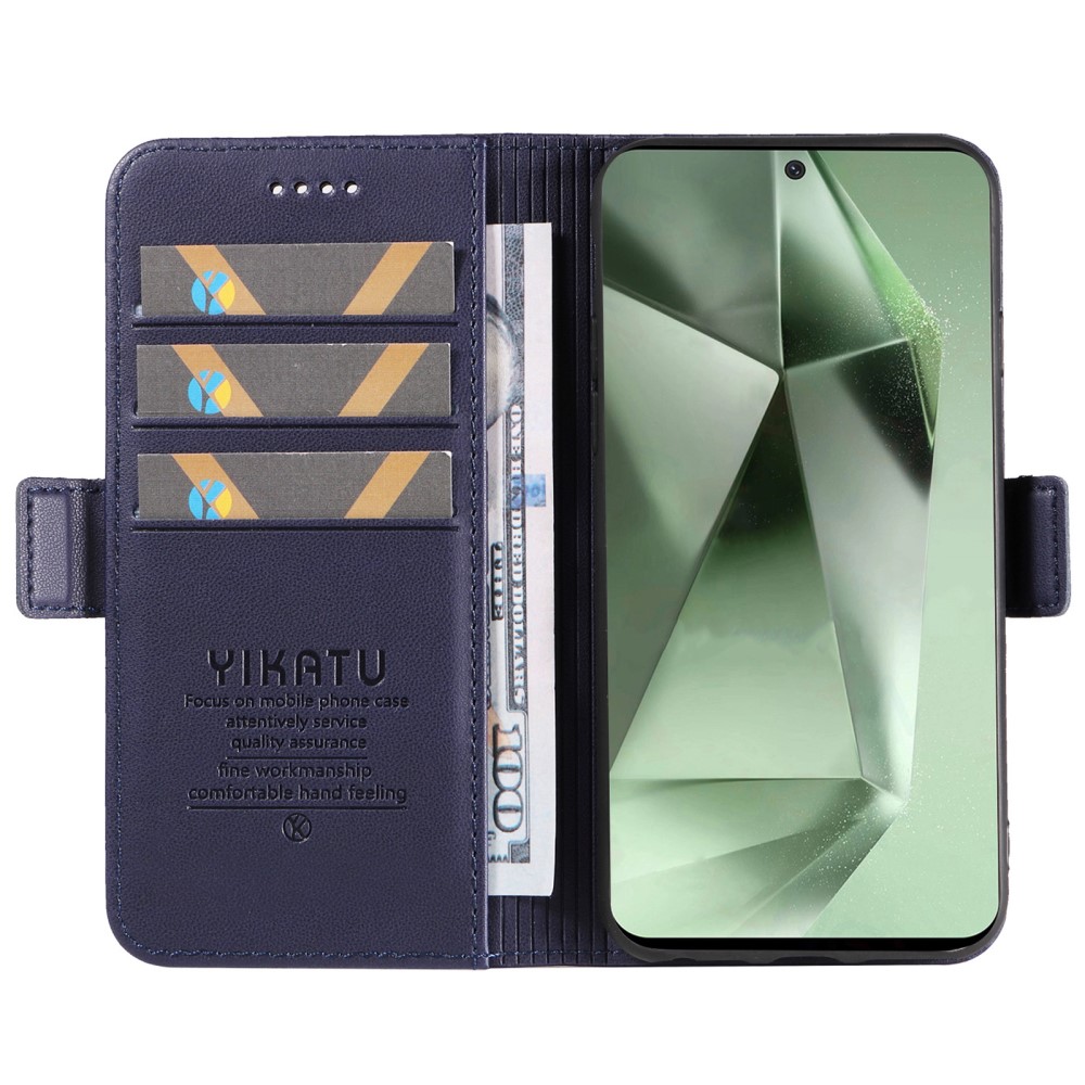 Θήκη Samsung Galaxy S24 FE 5G YIKATU Folio Series 003 με βάση στήριξης, υποδοχή καρτών και μαγνητικό κούμπωμα Flip Wallet από συνθετικό δέρμα και TPU μπλε σκούρο