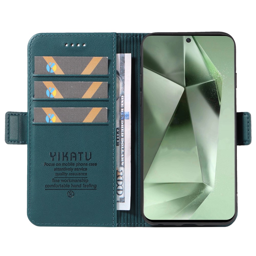 Θήκη Samsung Galaxy S24 FE 5G YIKATU Folio Series 003 με βάση στήριξης, υποδοχή καρτών και μαγνητικό κούμπωμα Flip Wallet από συνθετικό δέρμα και TPU πράσινο