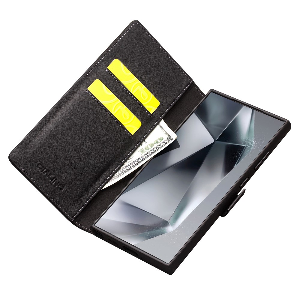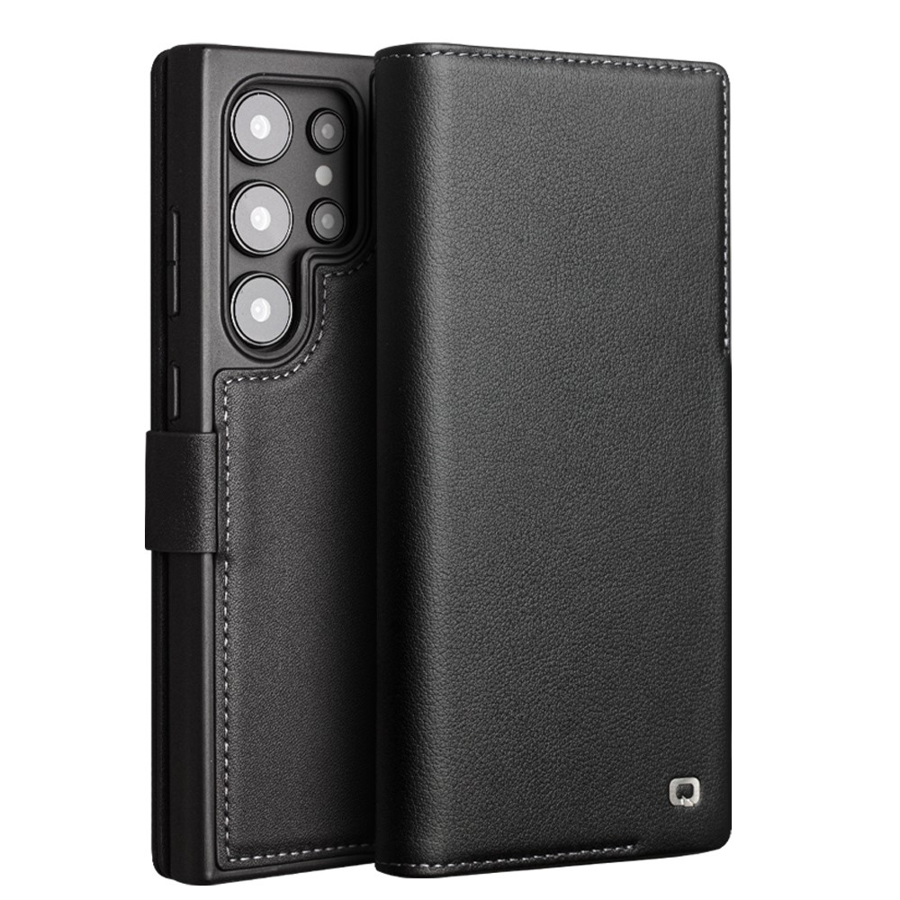 Θήκη Samsung Galaxy S24 Ultra 5G QIALINO book v4 με μαγνητικό κούμπωμα από Premium αυθεντικό δέρμα Genuine Cowhide μαύρο