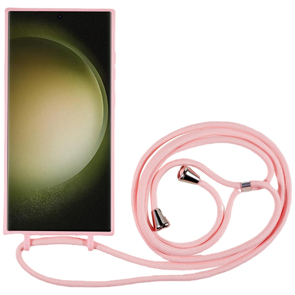 Θήκη Samsung Galaxy S24 Ultra 5G OEM Soft Silicone Sockproof v2 πλάτη με κορδόνι από αντικραδασμικό TPU ροζ