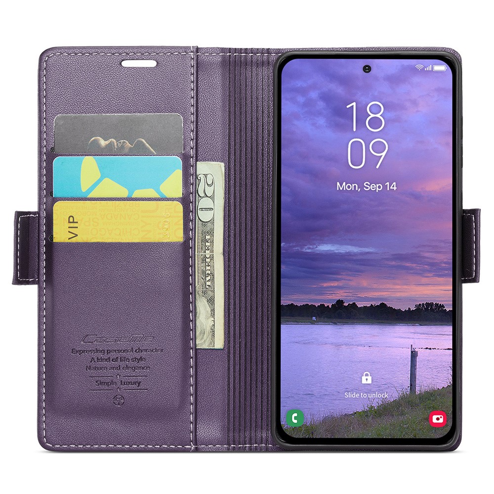 Θήκη Samsung Galaxy S25 Plus 5G / S24 Plus 5G CASEME 023 Series Πορτοφόλι με βάση στήριξης, υποδοχές καρτών και μαγνητικό κούμπωμα από συνθετικό δέρμα και TPU μωβ